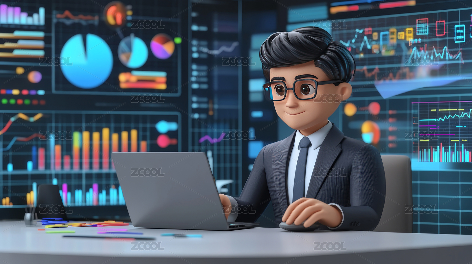 3D卡通商务人物分析数据