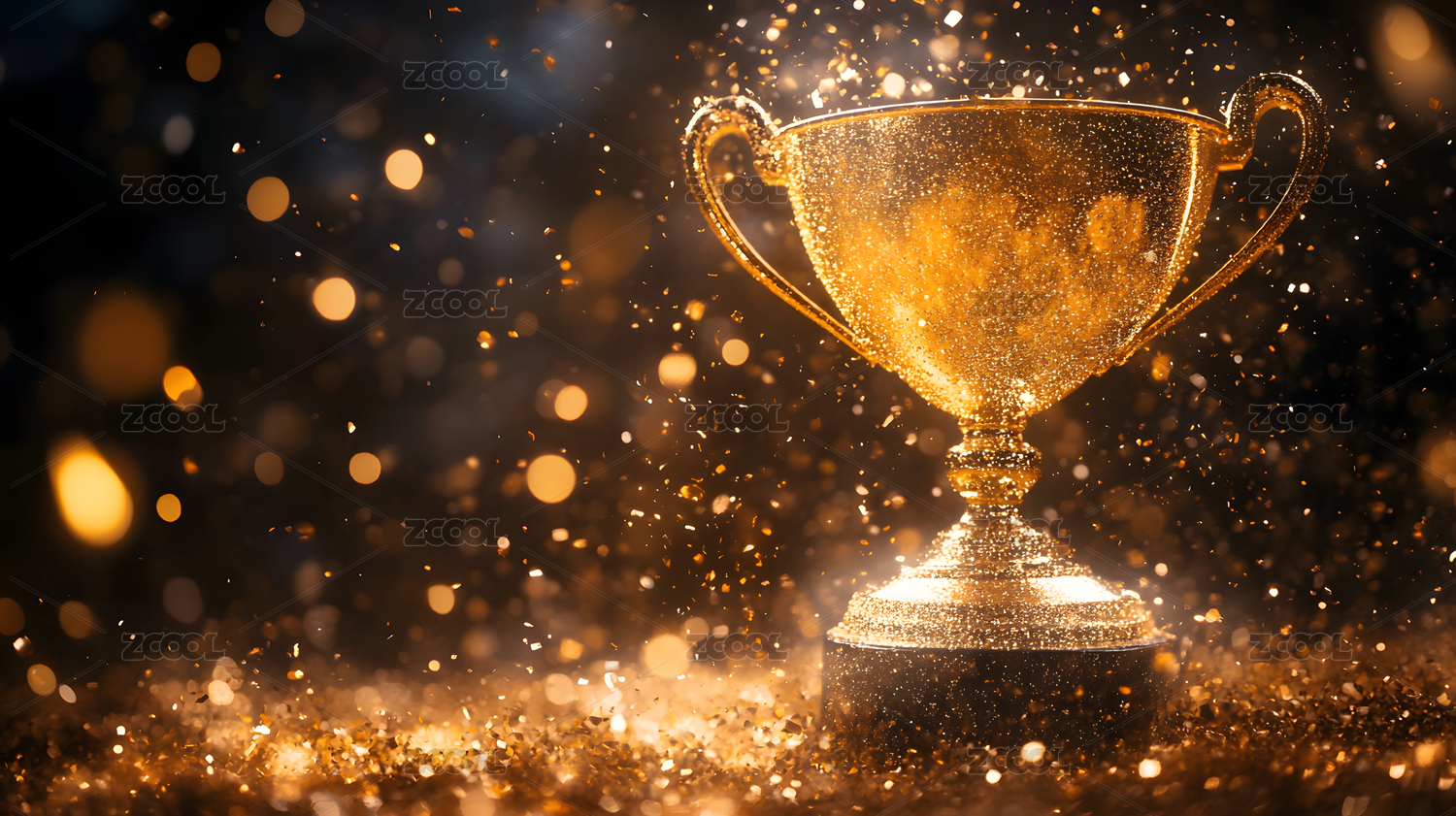 金色奖杯与飞舞金屑