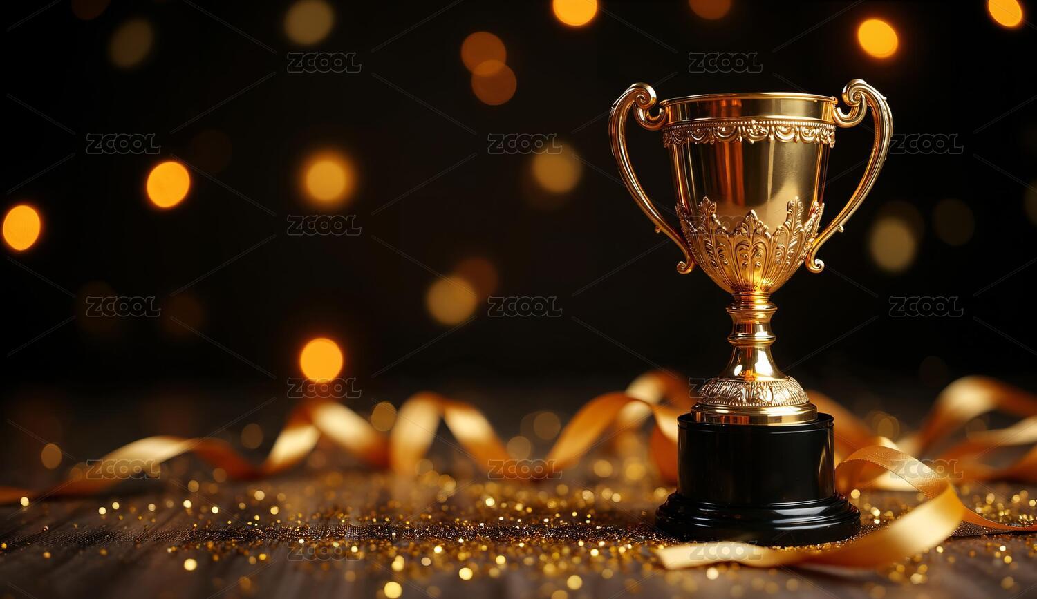 金奖杯光斑庆祝氛围