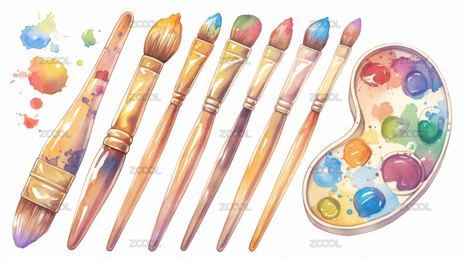 颜料盘,调色盘,插画,画笔,色彩,艺术,美术,手绘,儿童教育,绘画工具