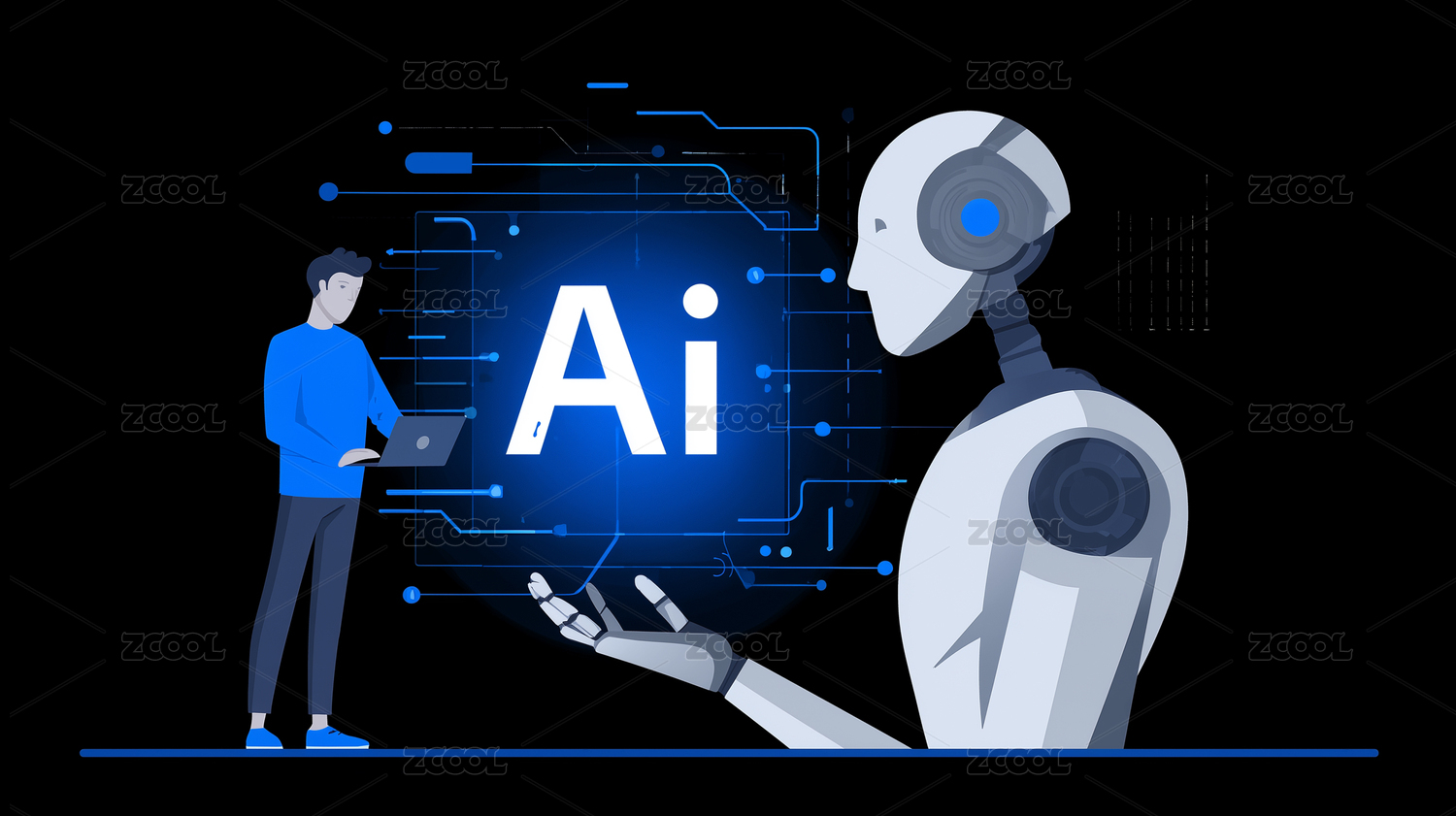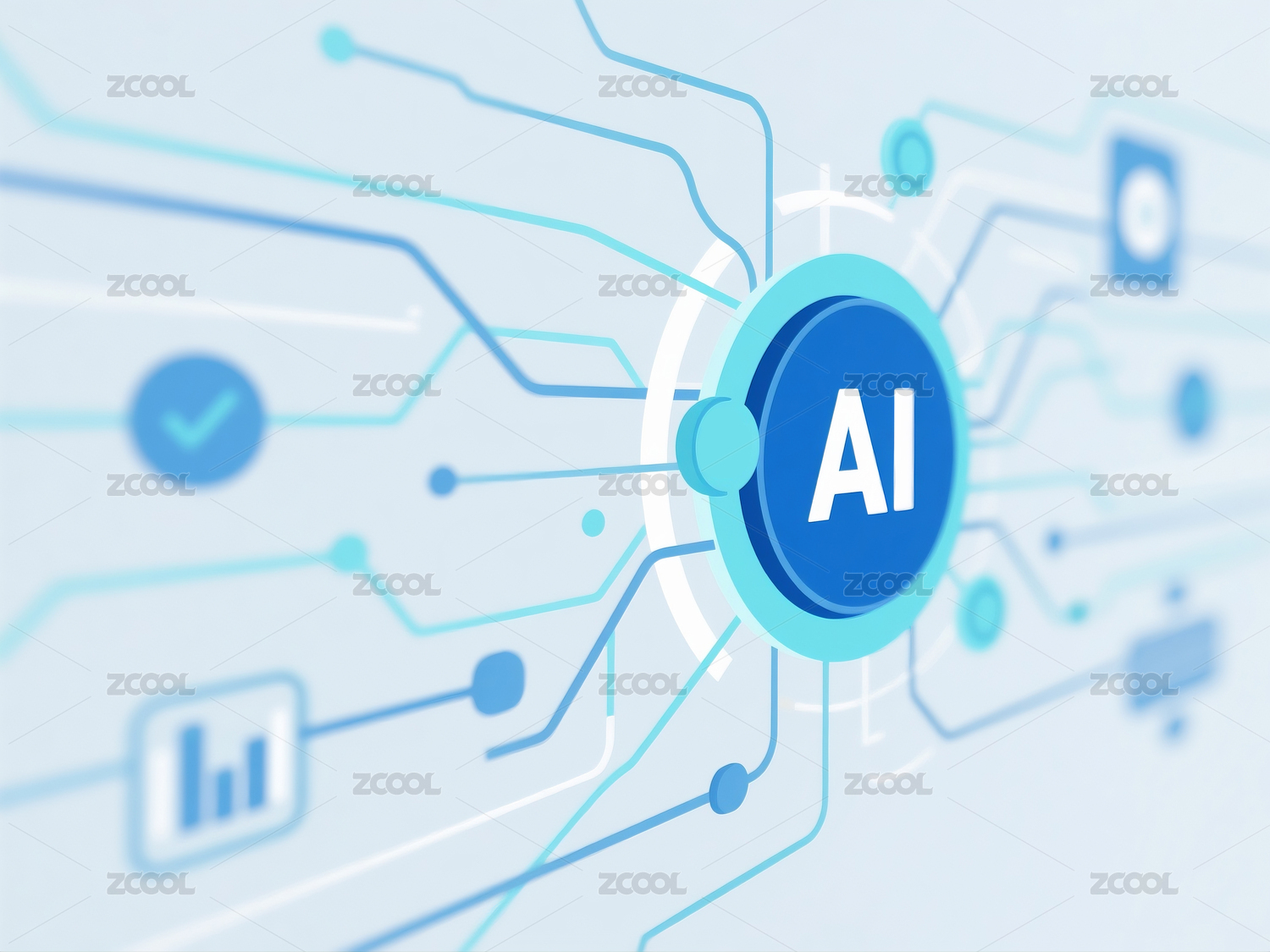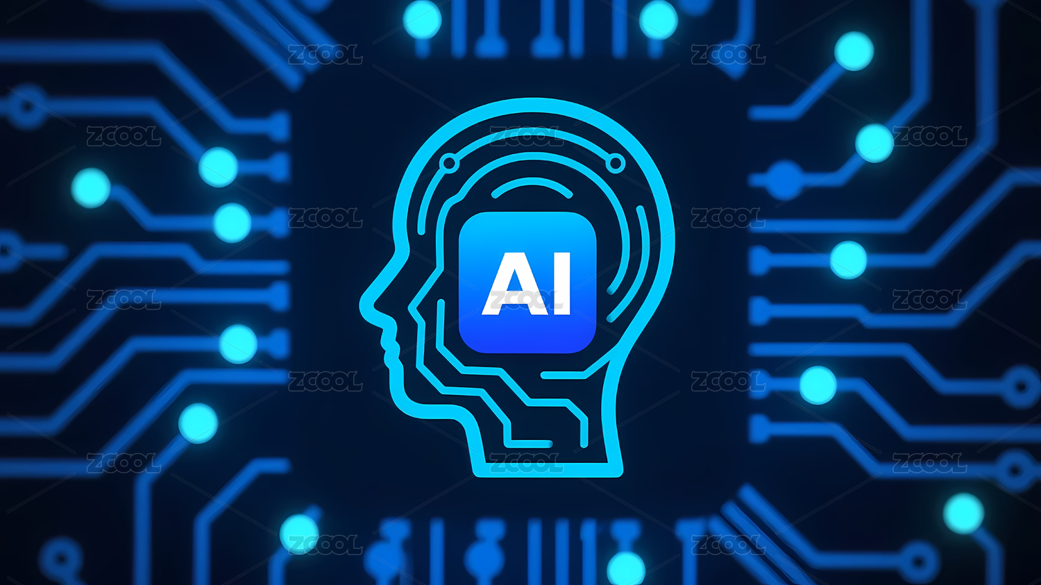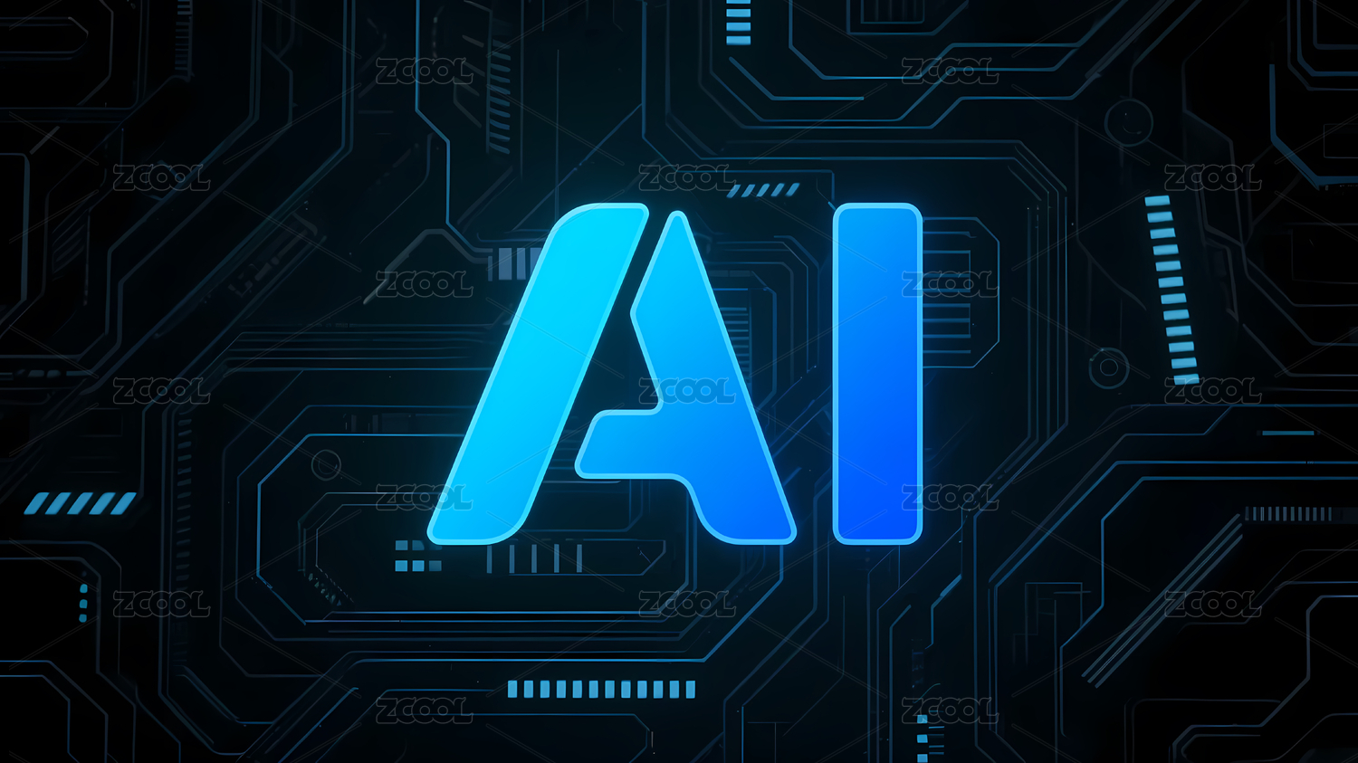 蓝色AI标志与电路背景