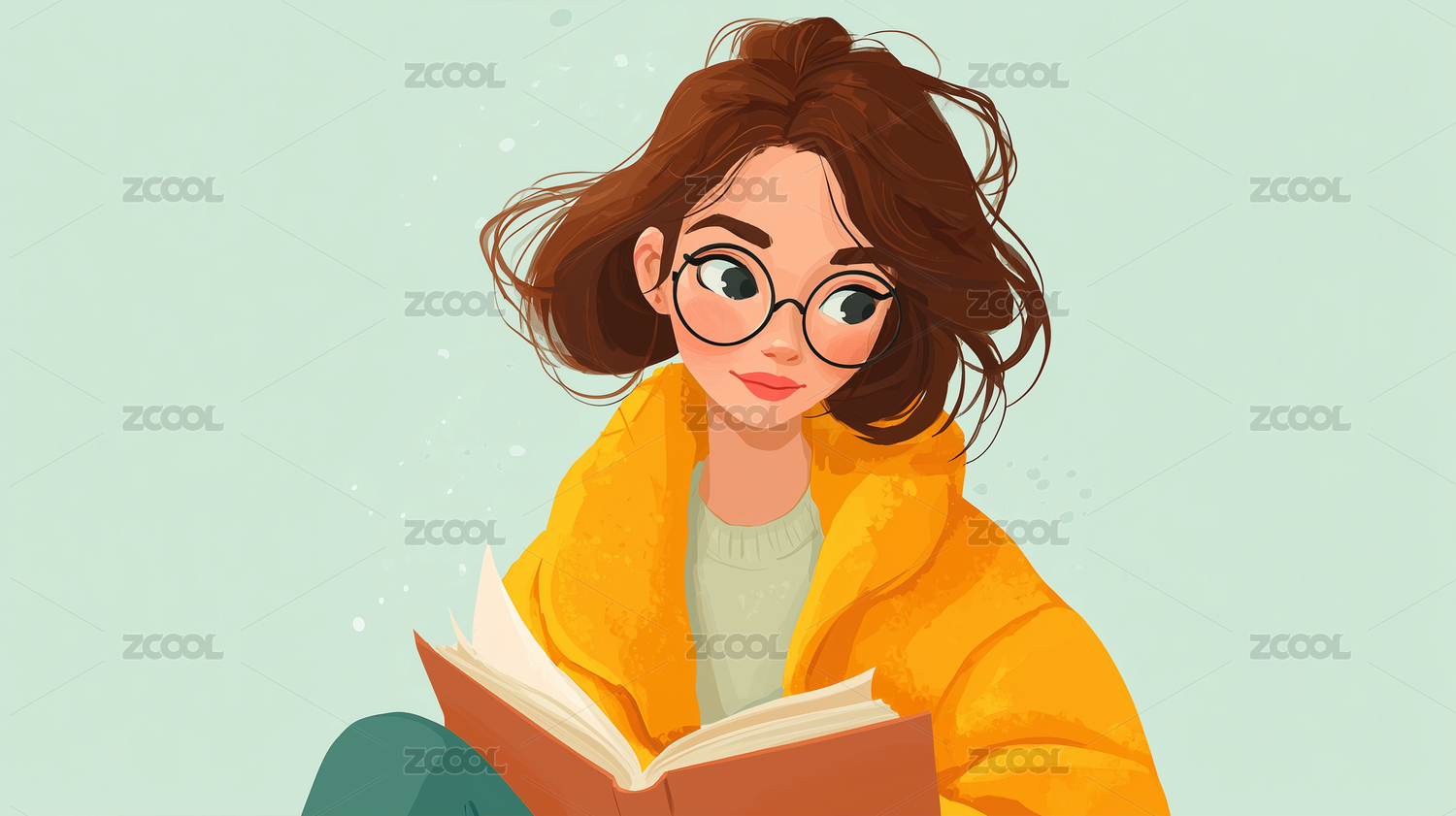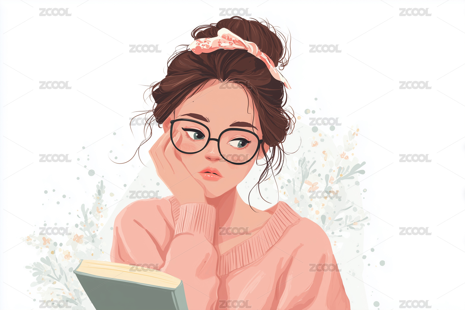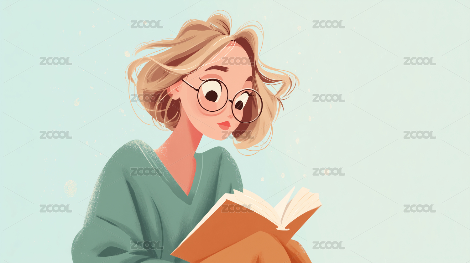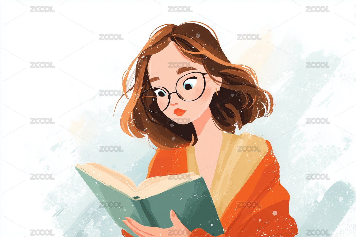 背景,阅读,女孩,插画,可爱,绘画,读书日,学习,书籍,矢量