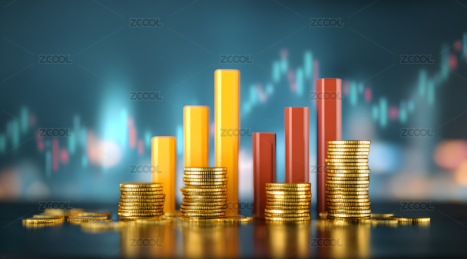 金币与金融图表的财富意象