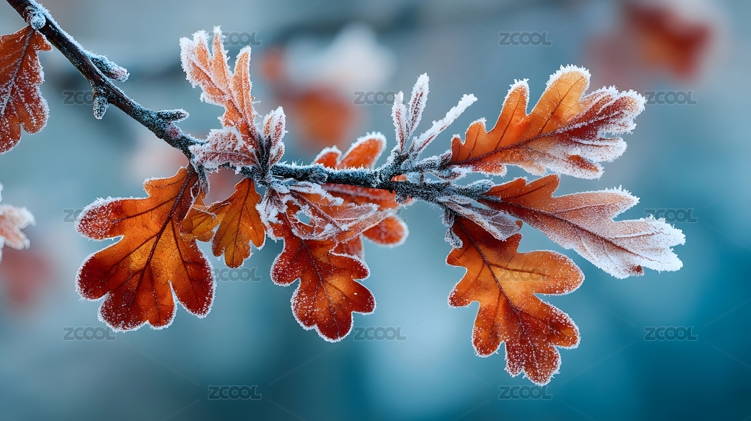 主视觉,素材,艺术,霜花,冬日,自然,场景,枫叶,红色,白色