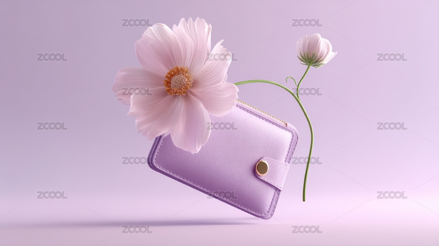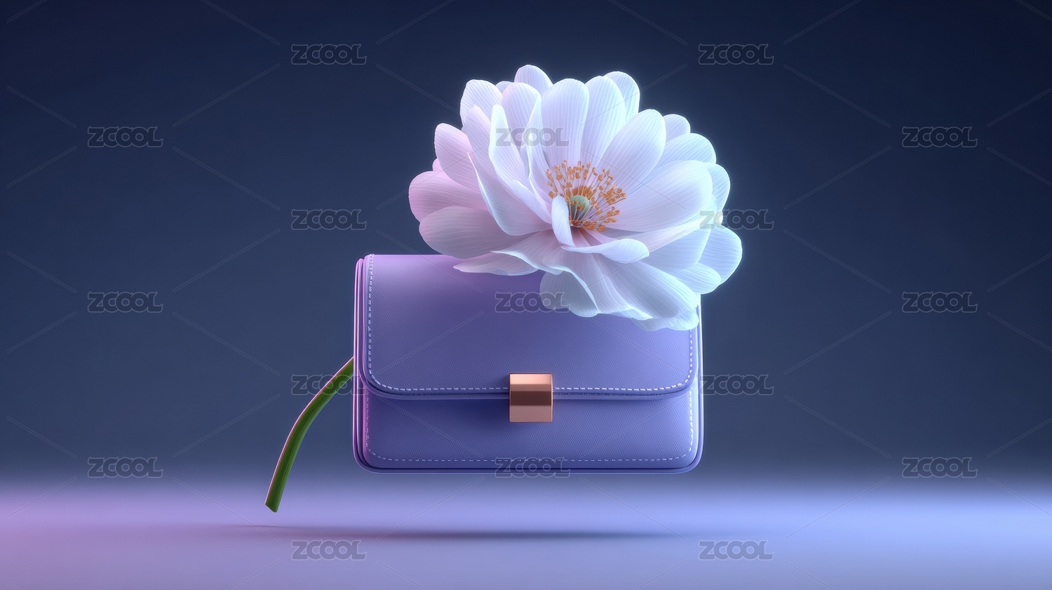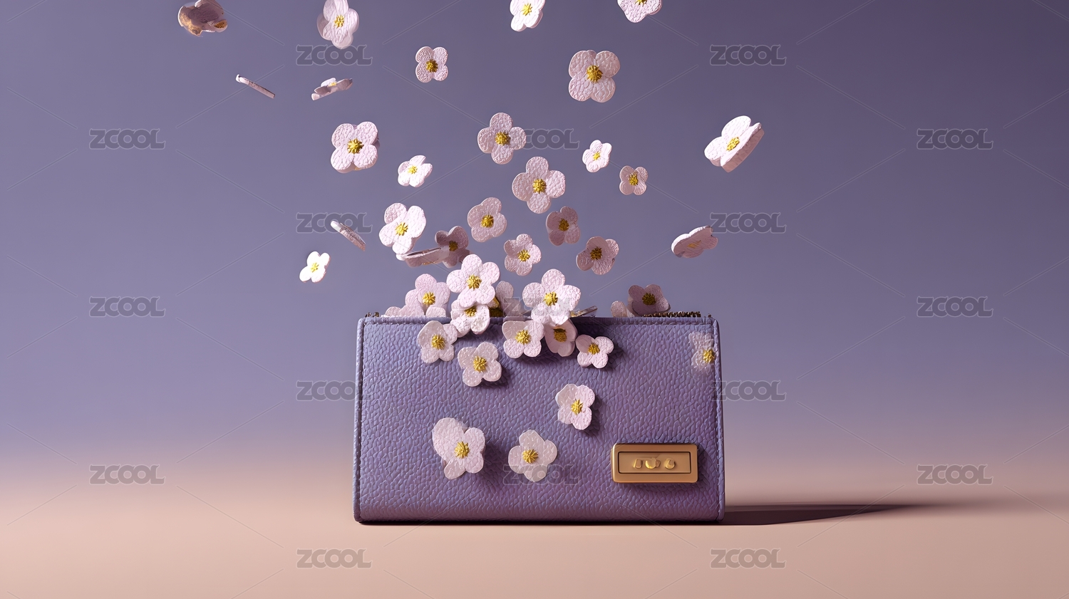 轻柔紫钱包悬浮花瓣暗蓝背景