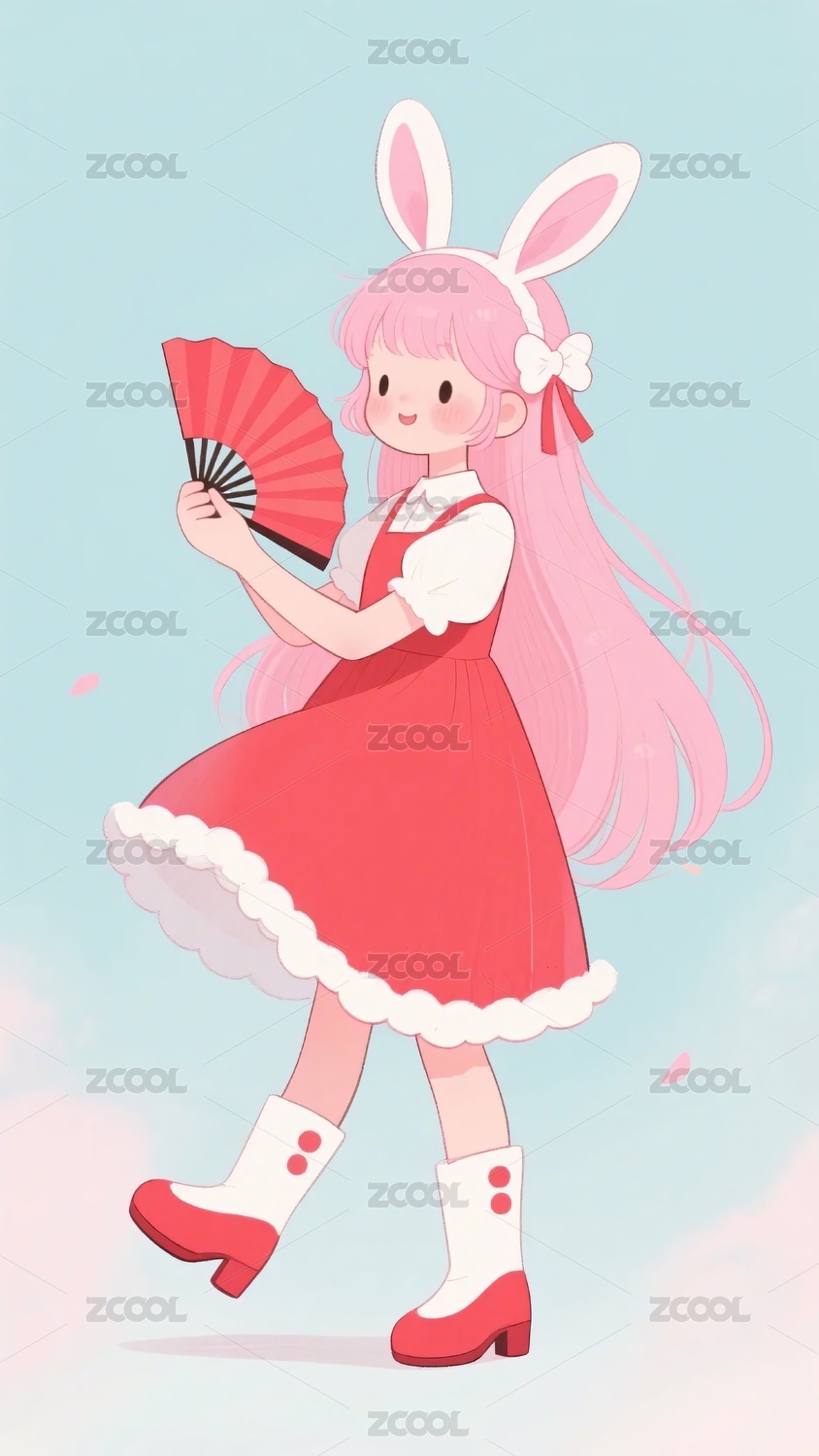 爱心女孩舞蹈裙子粉色兔子耳朵