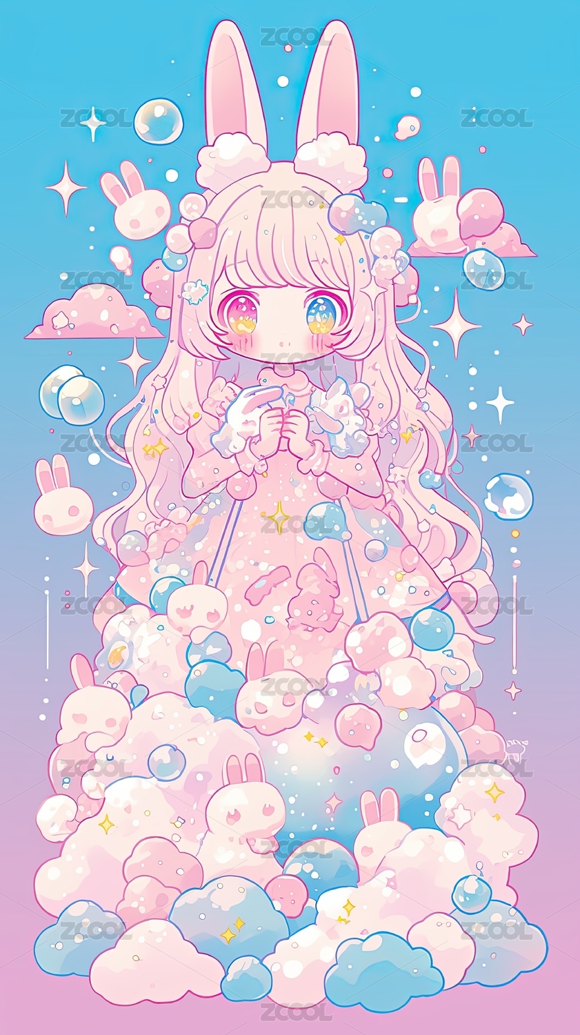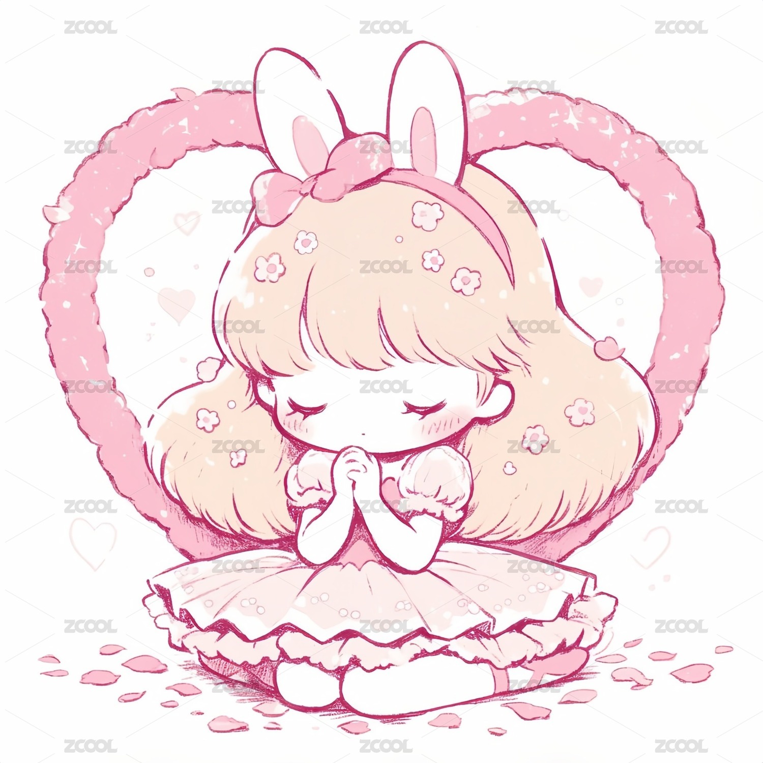 爱心,少女,粉色,花边,兔耳,芭蕾