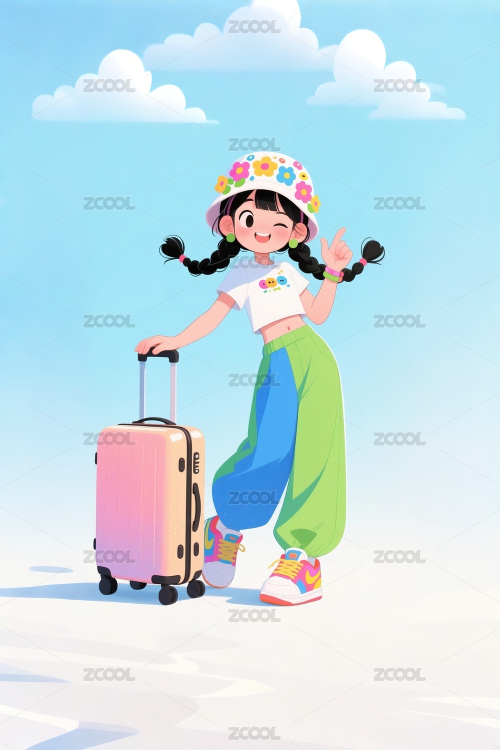 女生,女孩,少女,旅行,度假,假期,行李箱,旅游,出游,旅行箱
