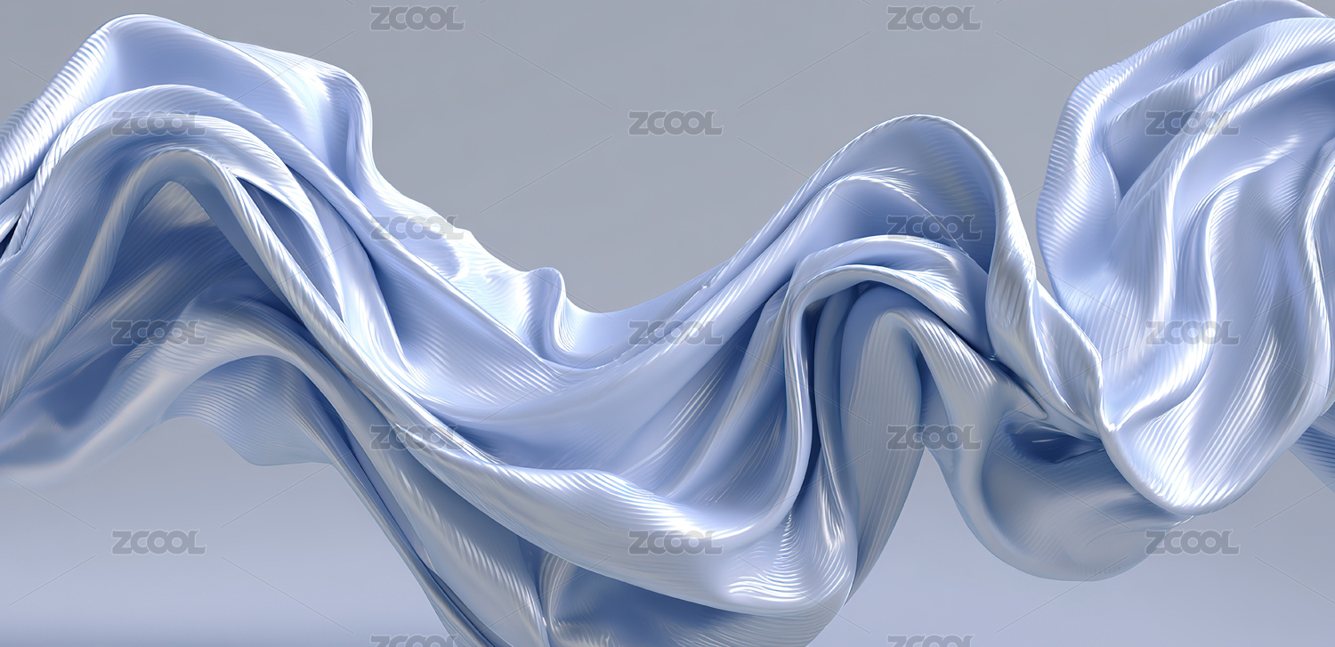蓝色绸缎飘舞 轻盈优雅 抽象氛围
