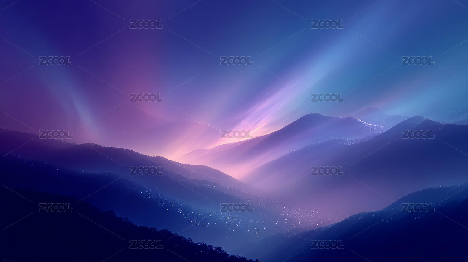 光束照亮山脉与天空