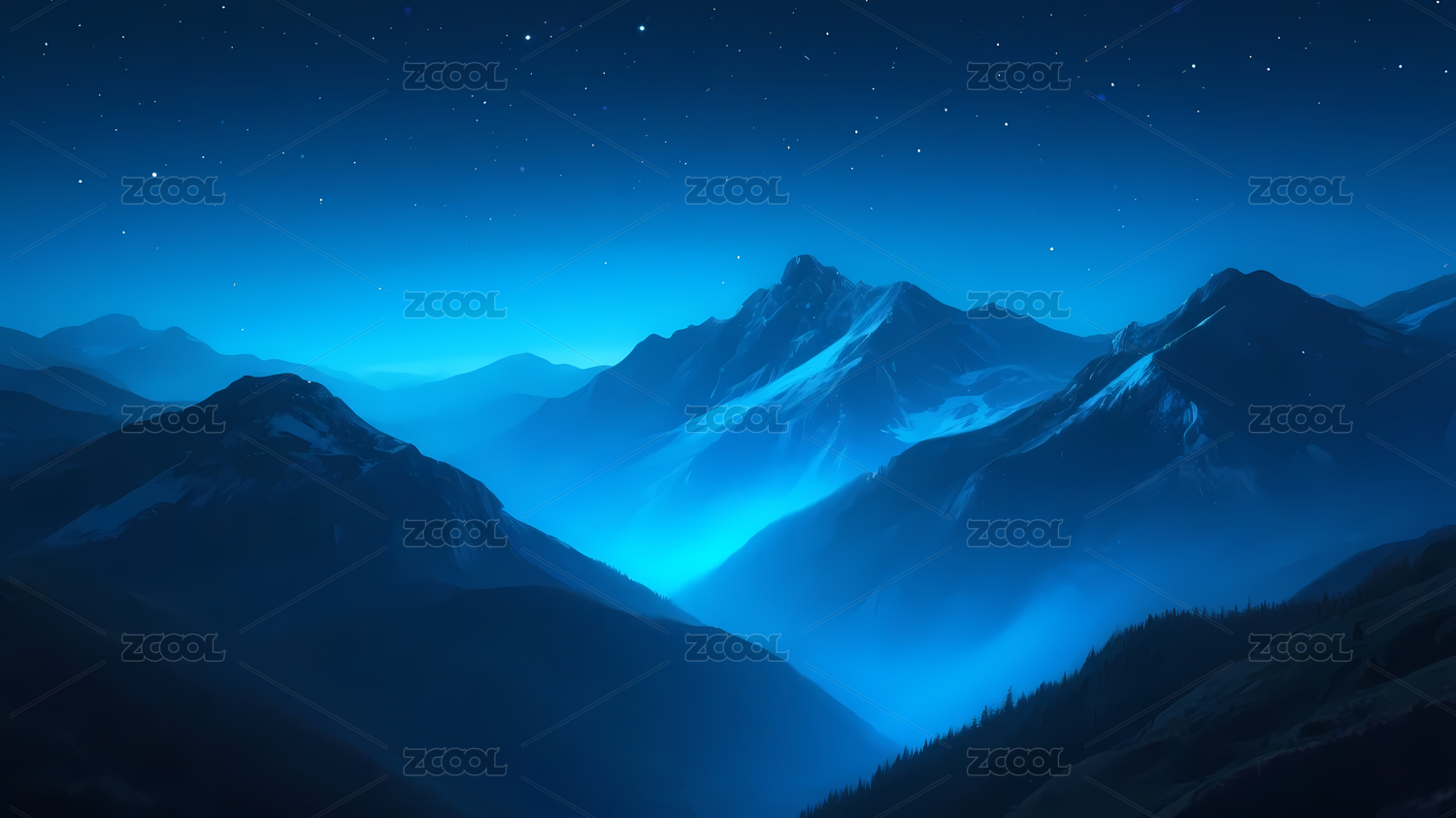 梦幻蓝色星空山脉科幻背景