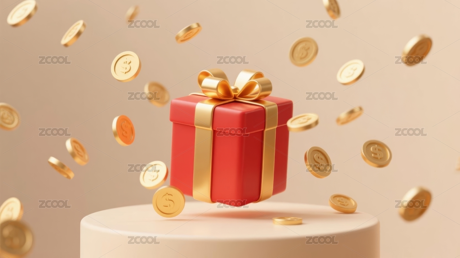 红色礼物盒与金色硬币