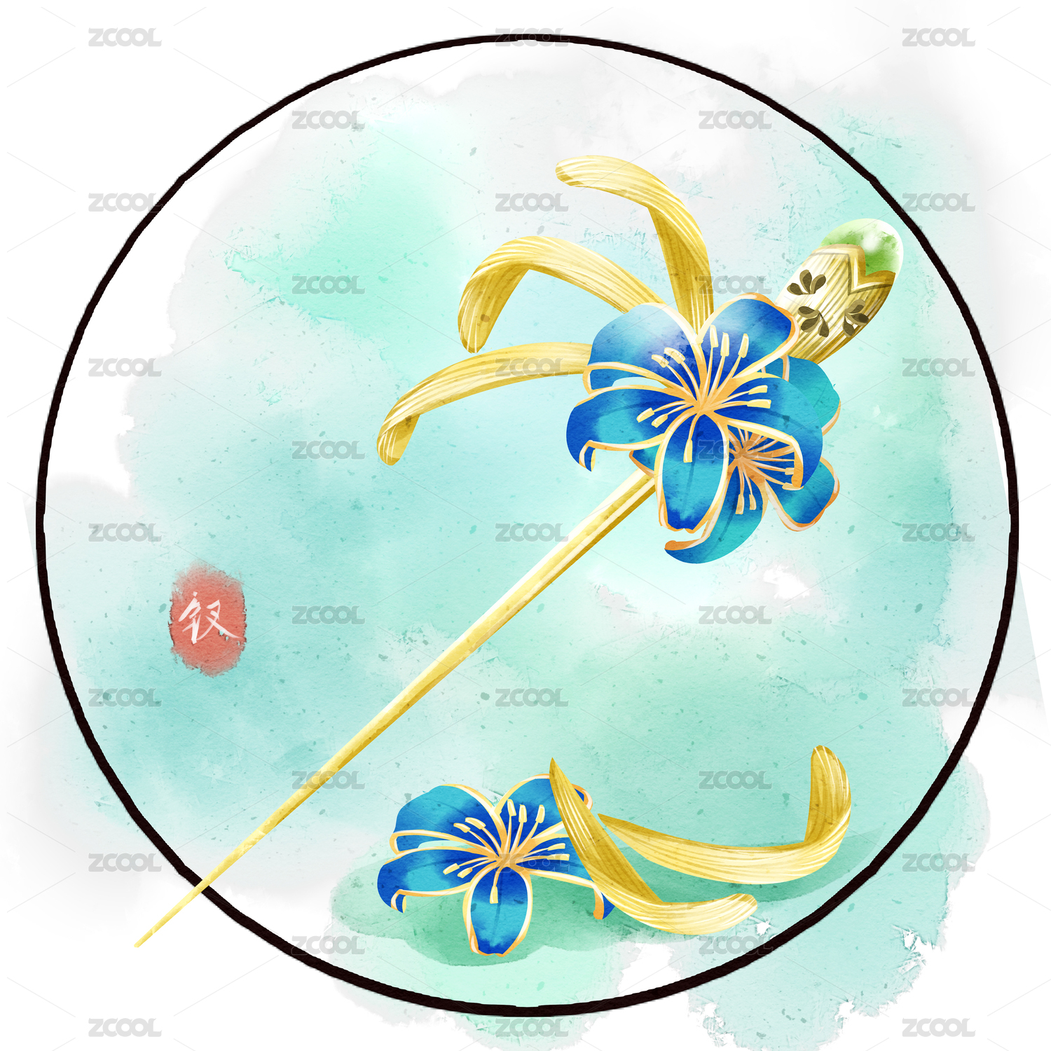 国风手绘发簪素材