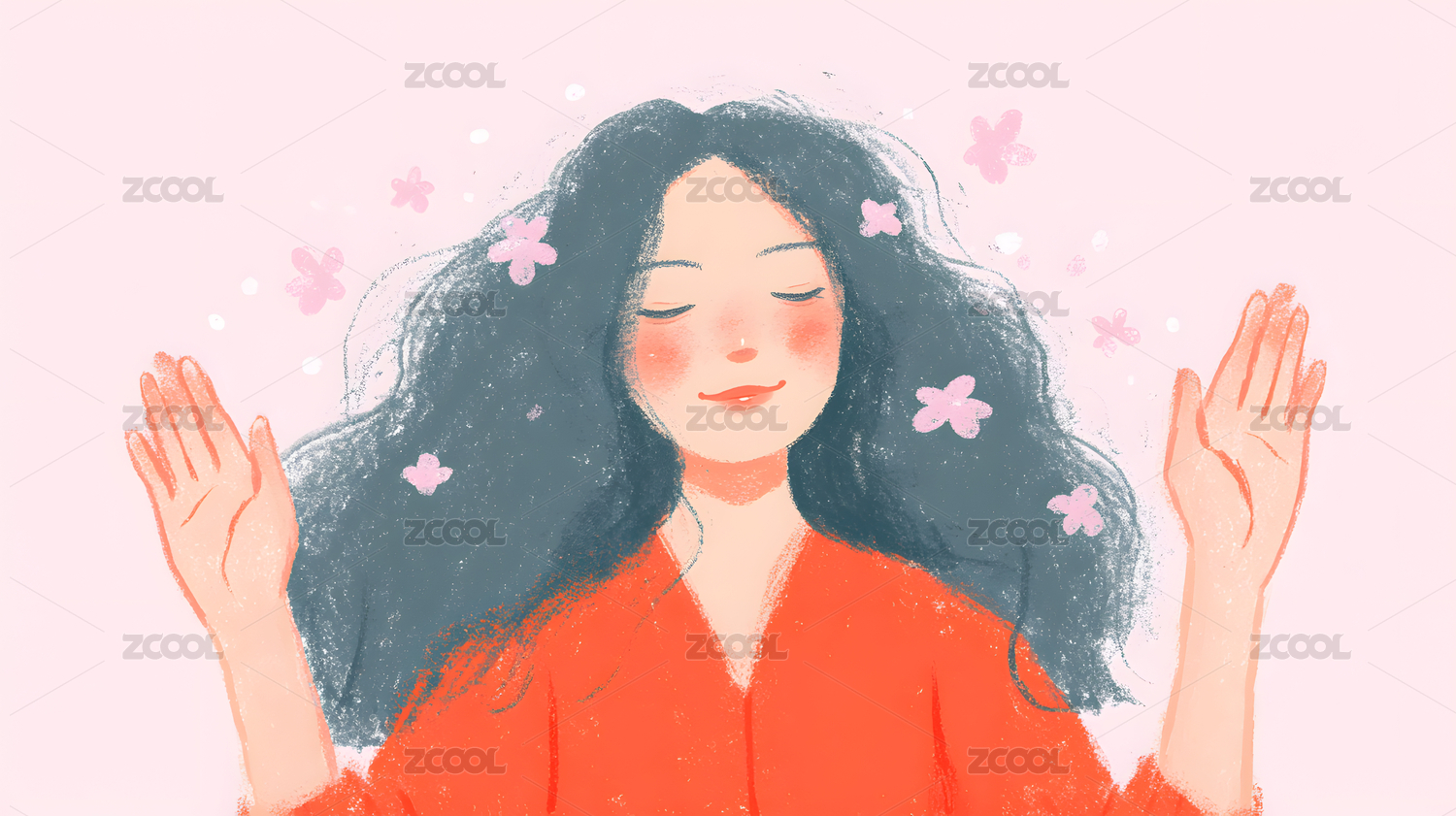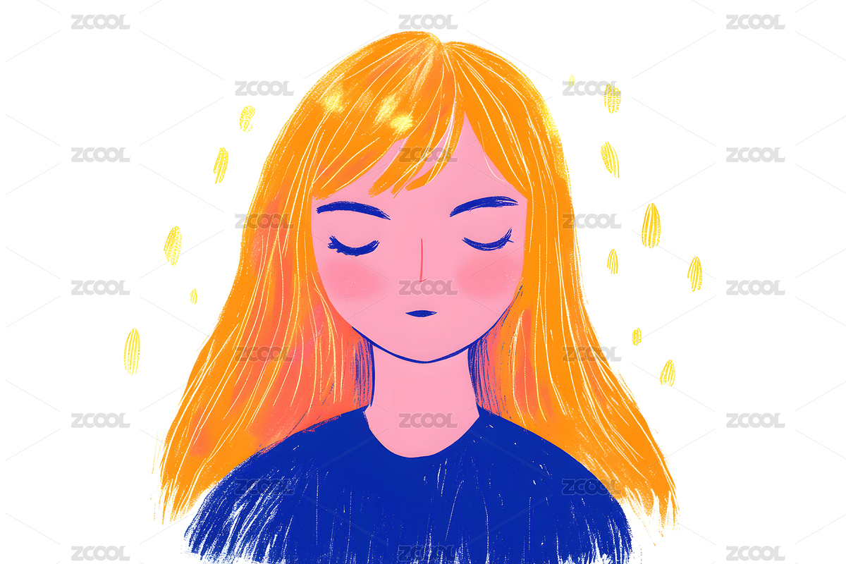 橙绿少女时尚肖像大头照矢量扁平化设计背景