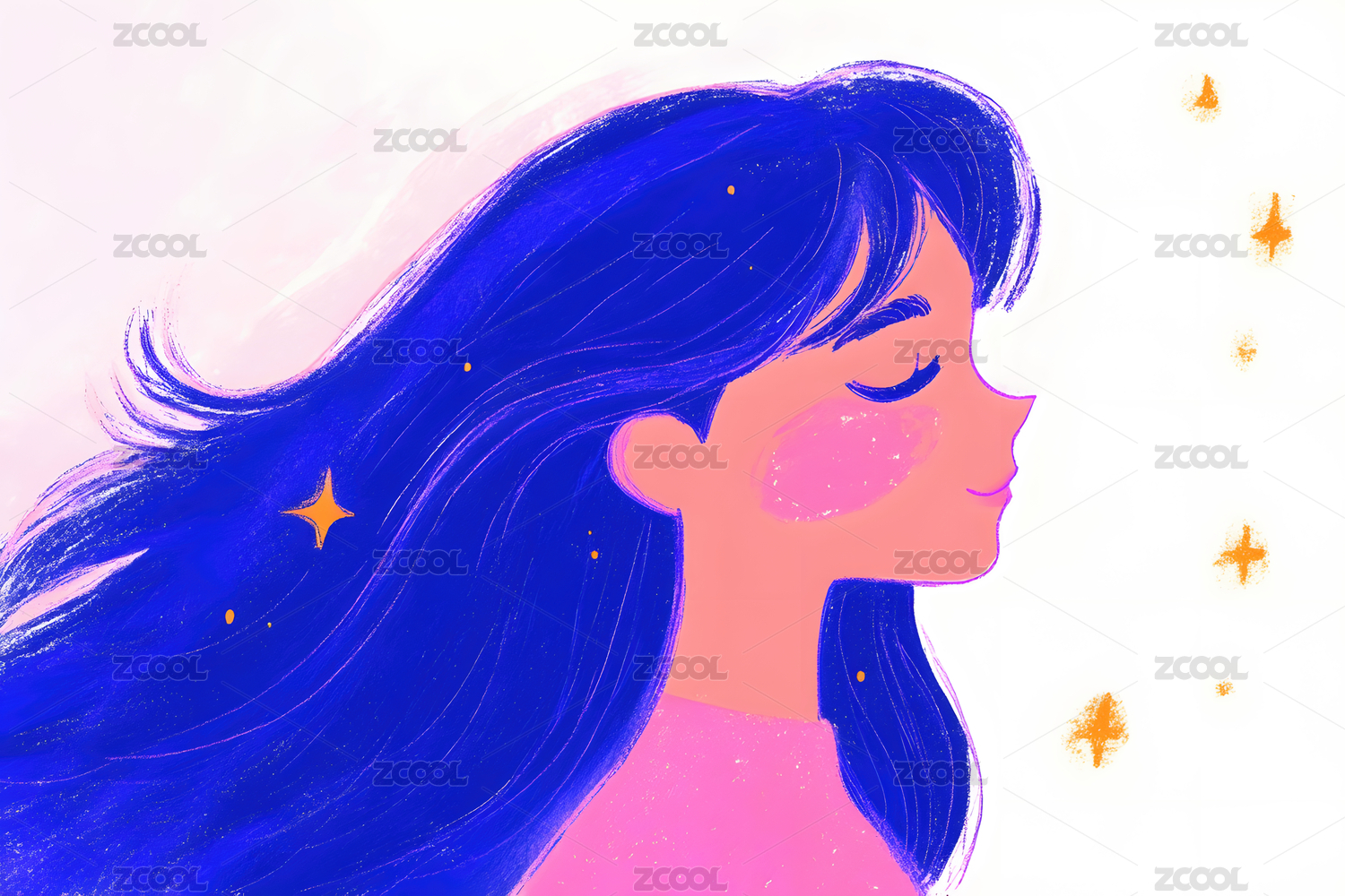 黄蓝少女时尚肖像大头照矢量扁平化设计背景