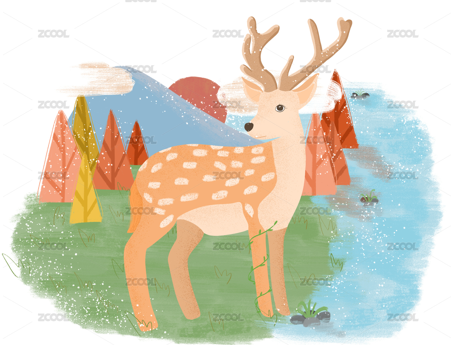 简笔手绘动物鹿卡通轮廓儿童生物知识素材