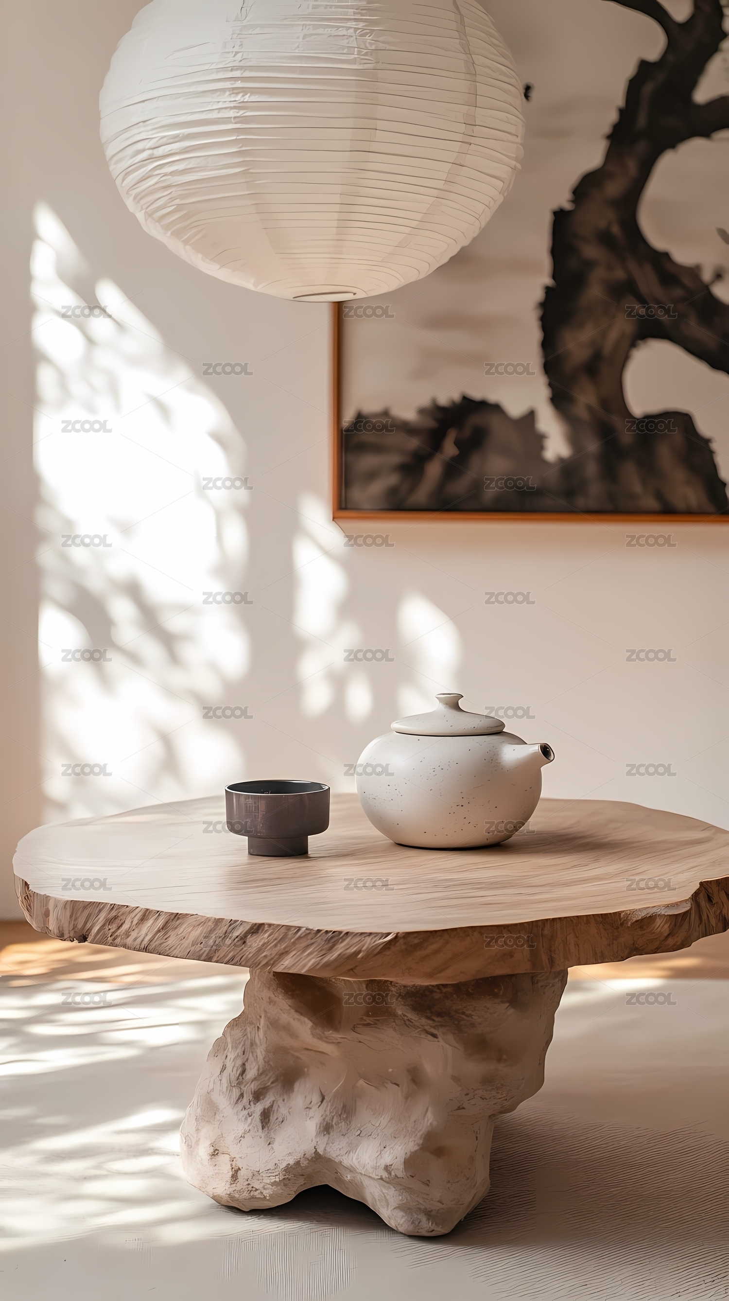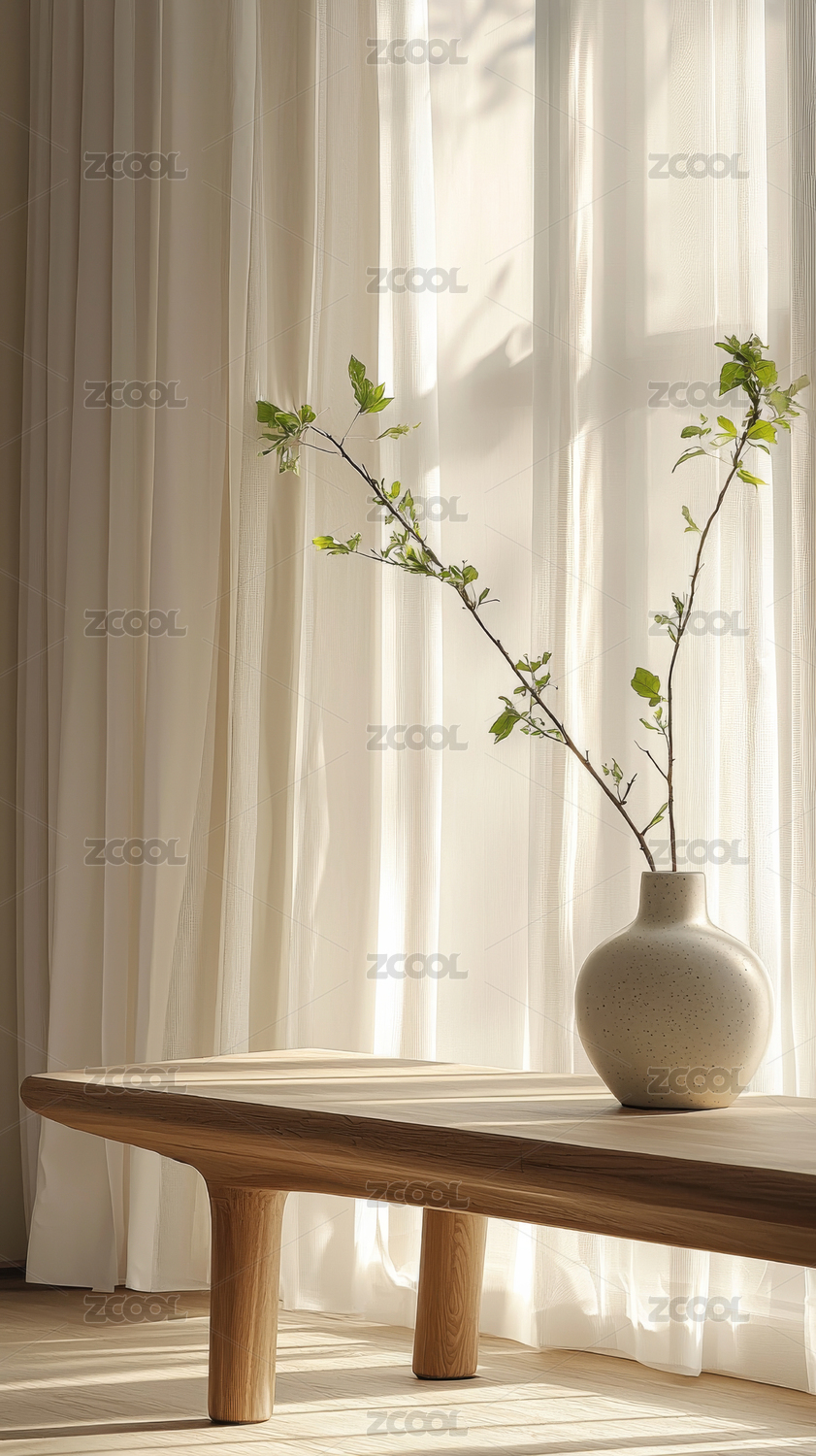 日式,茶席,场景,窗户,阳光,植物,茶具,简约,自然,宁静