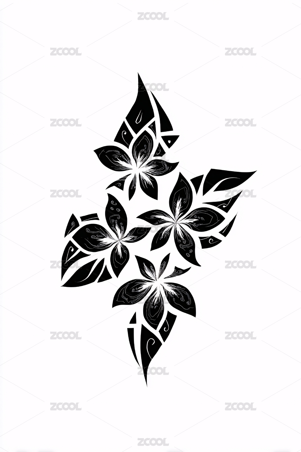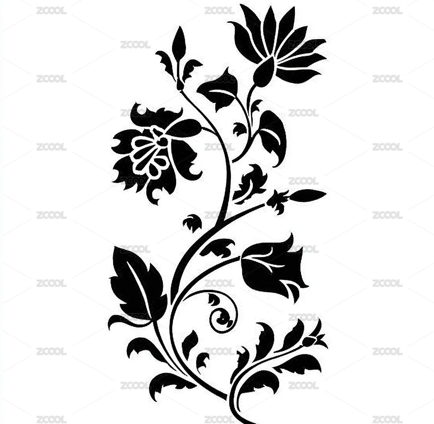 植物,花卉,图案,装饰,黑白,扁平,花朵,叶子,插画