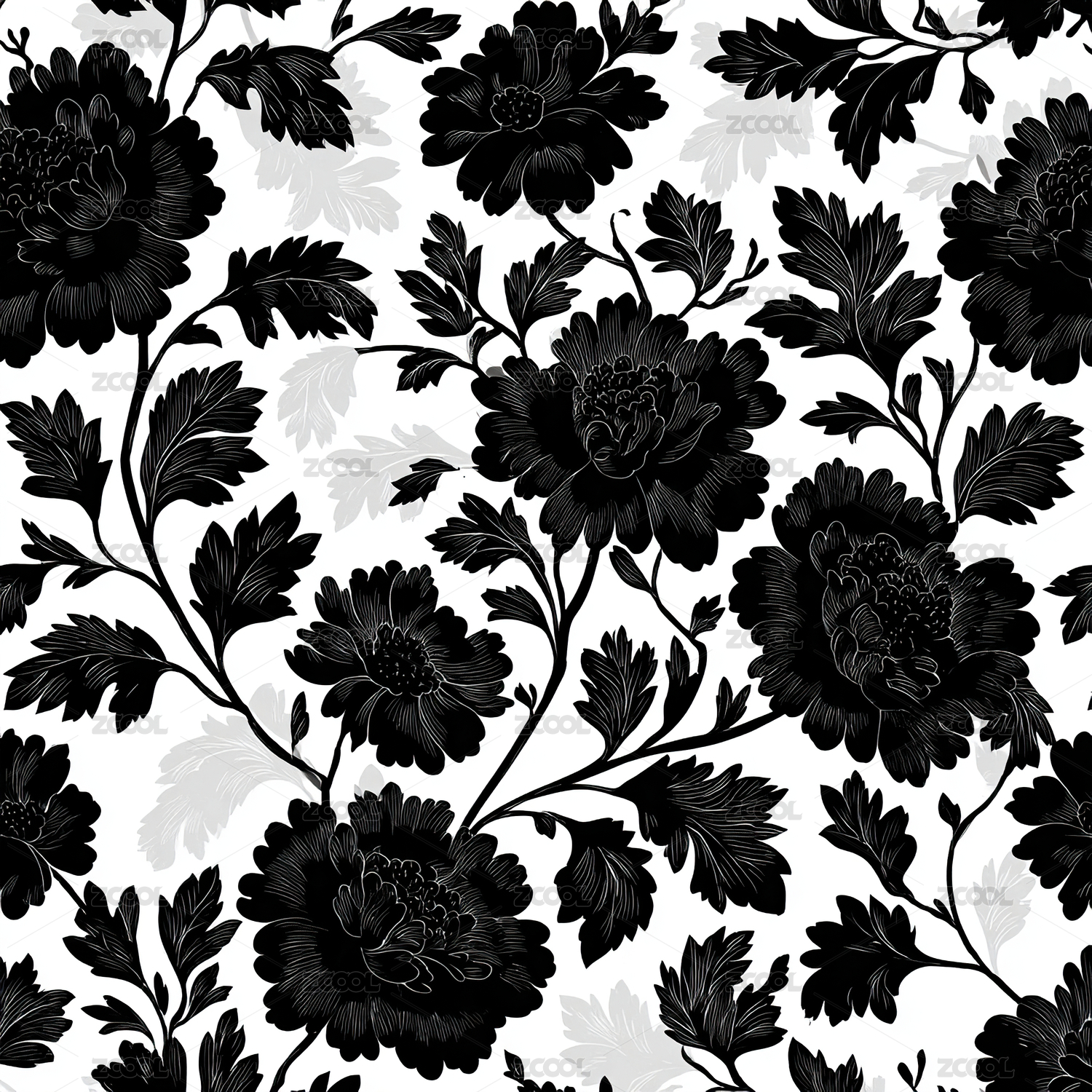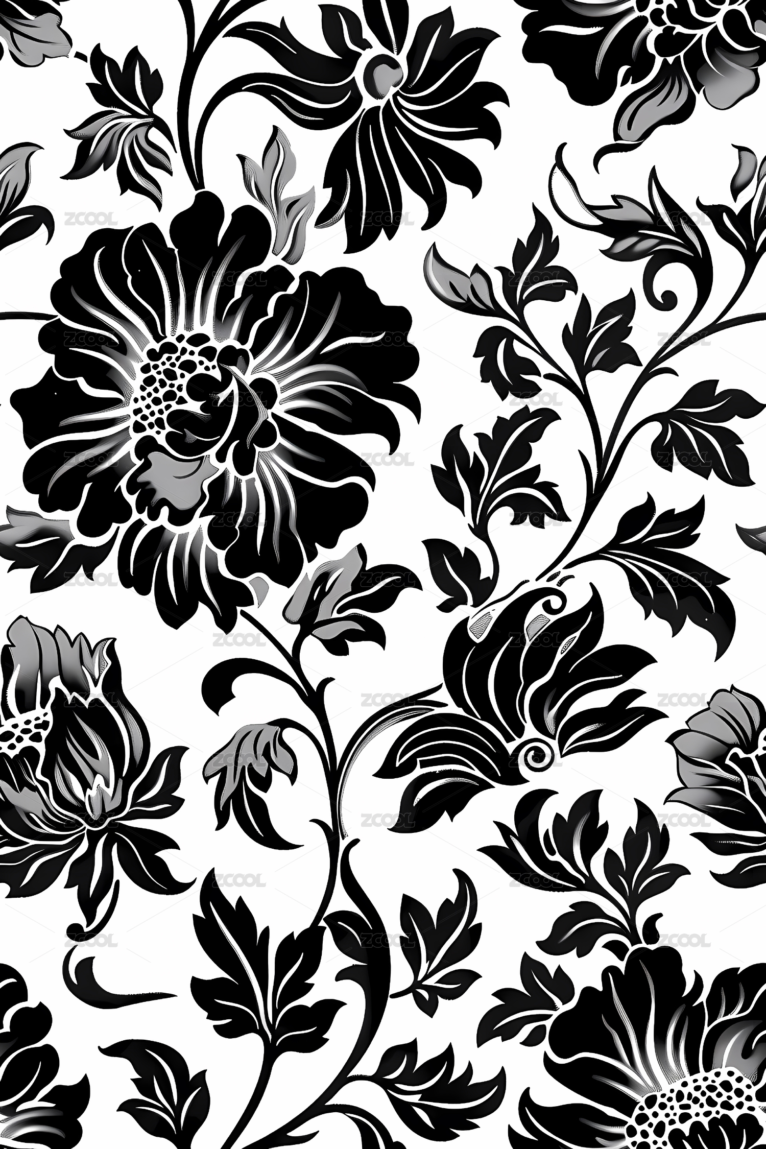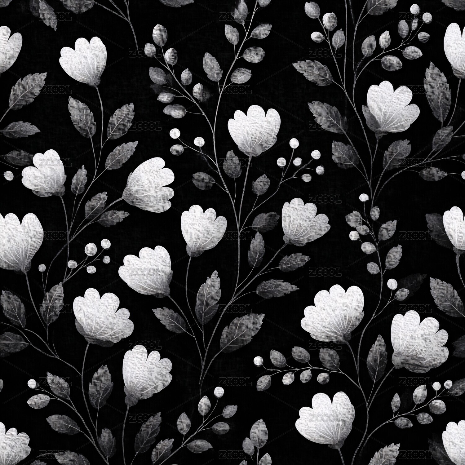 植物,花卉,图案,装饰,黑白,扁平,花朵,叶子,插画