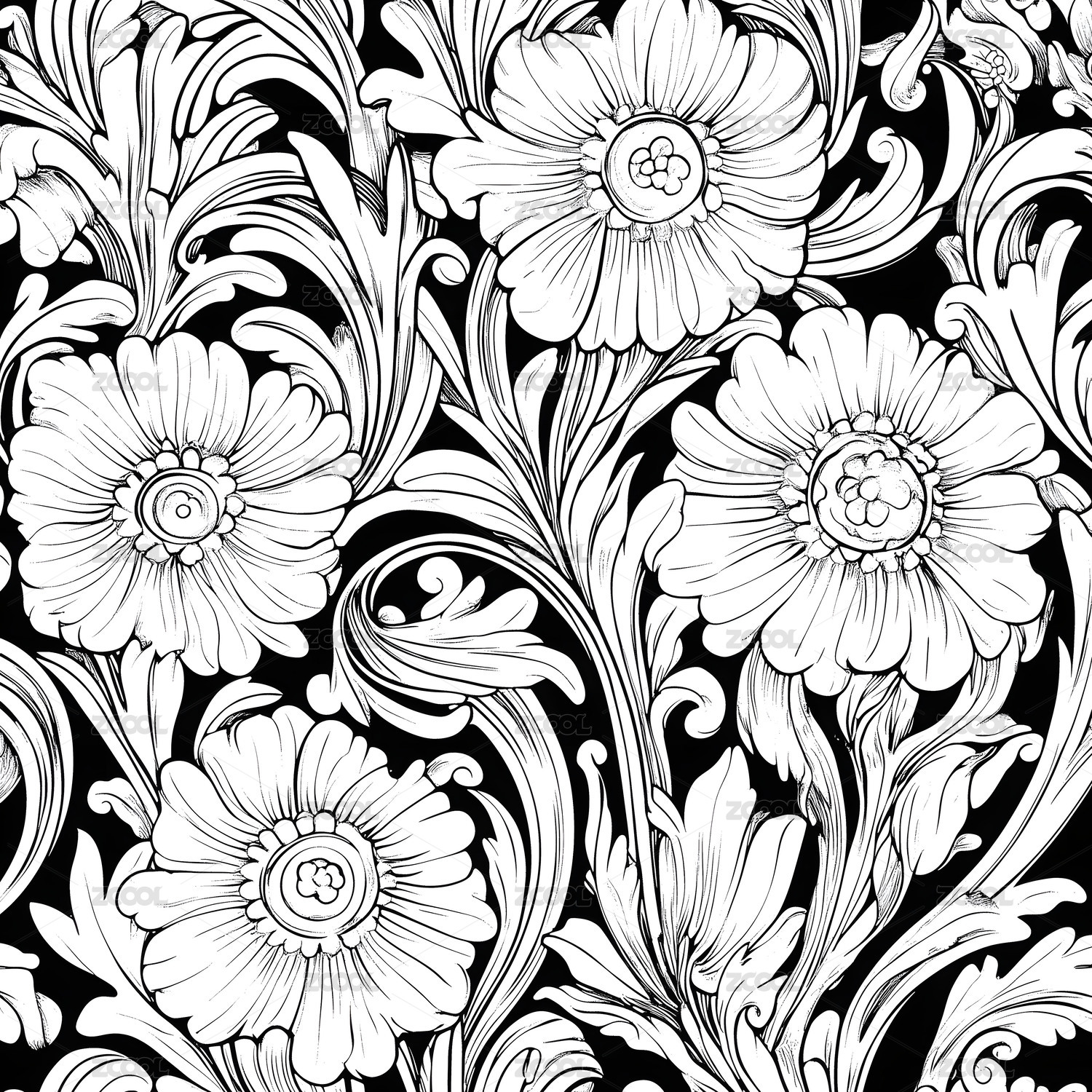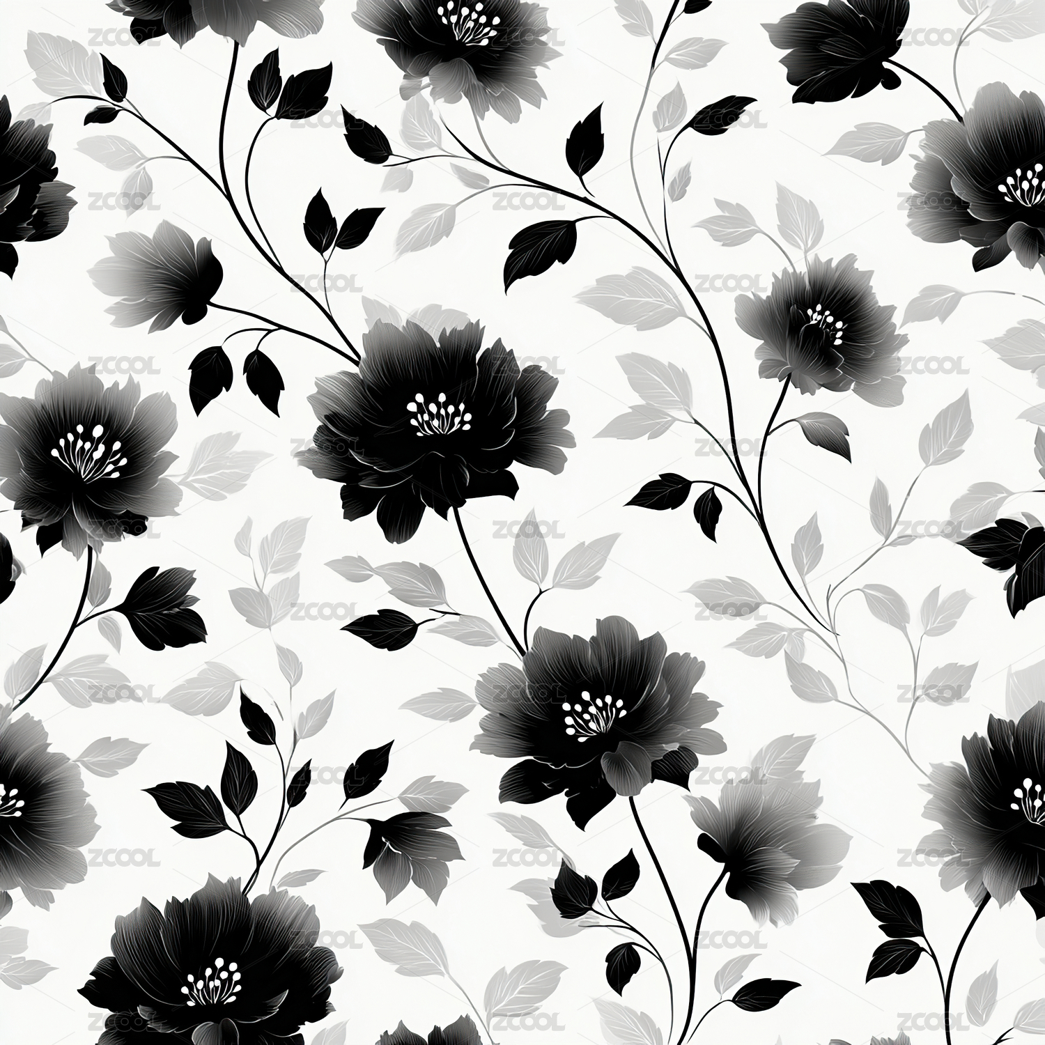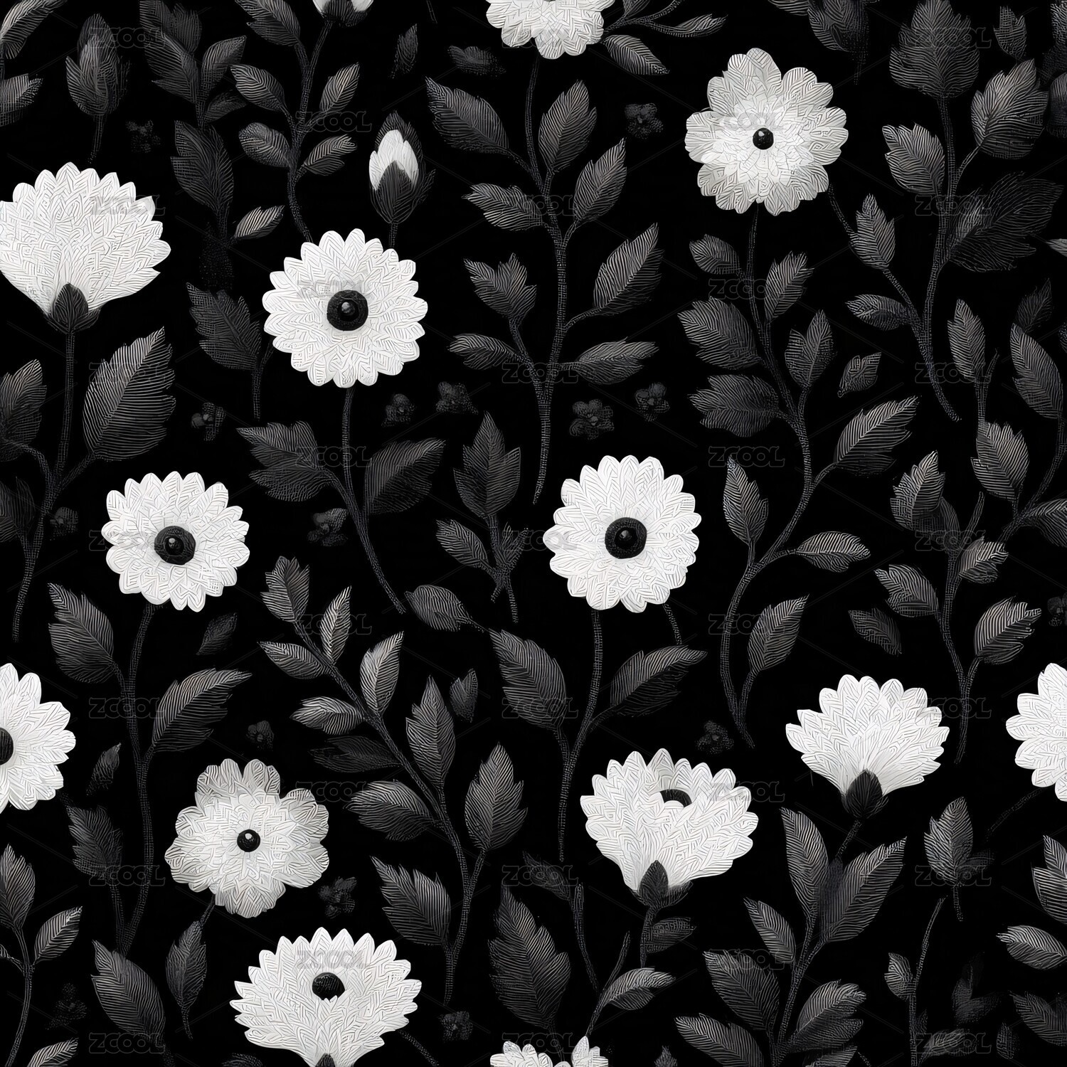 植物,花卉,图案,装饰,黑白,扁平,花朵,叶子,插画
