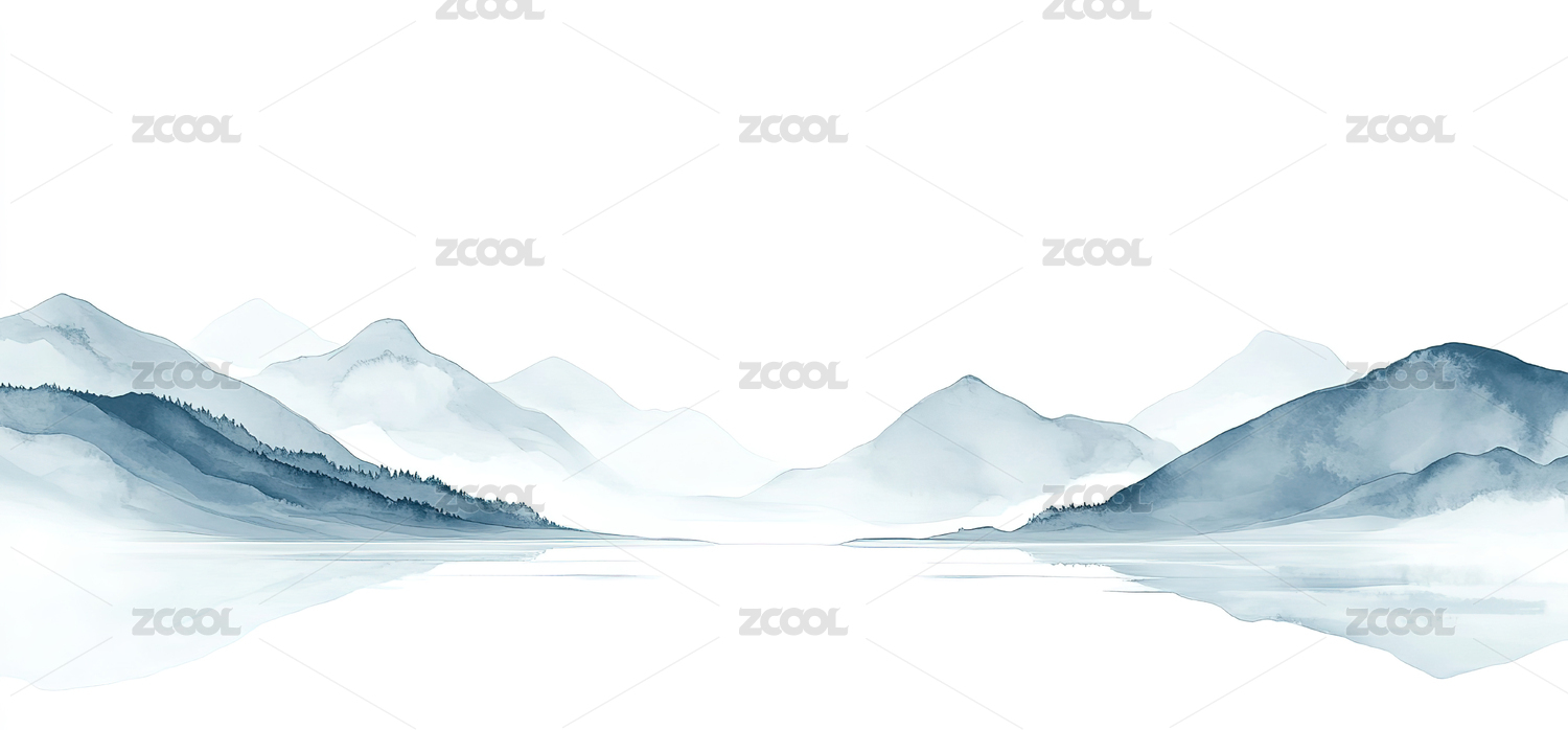 水墨山峦湖泊倒影