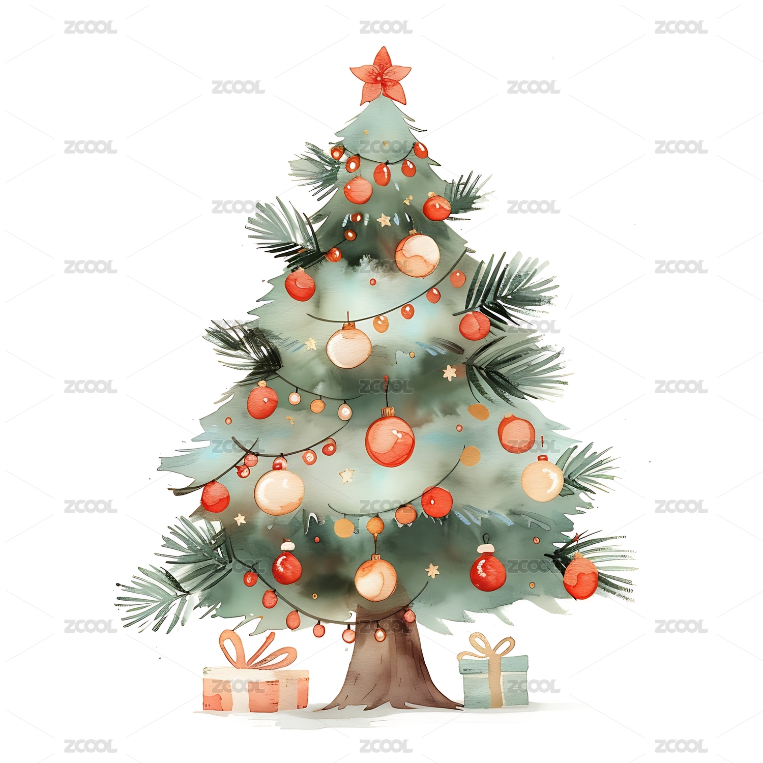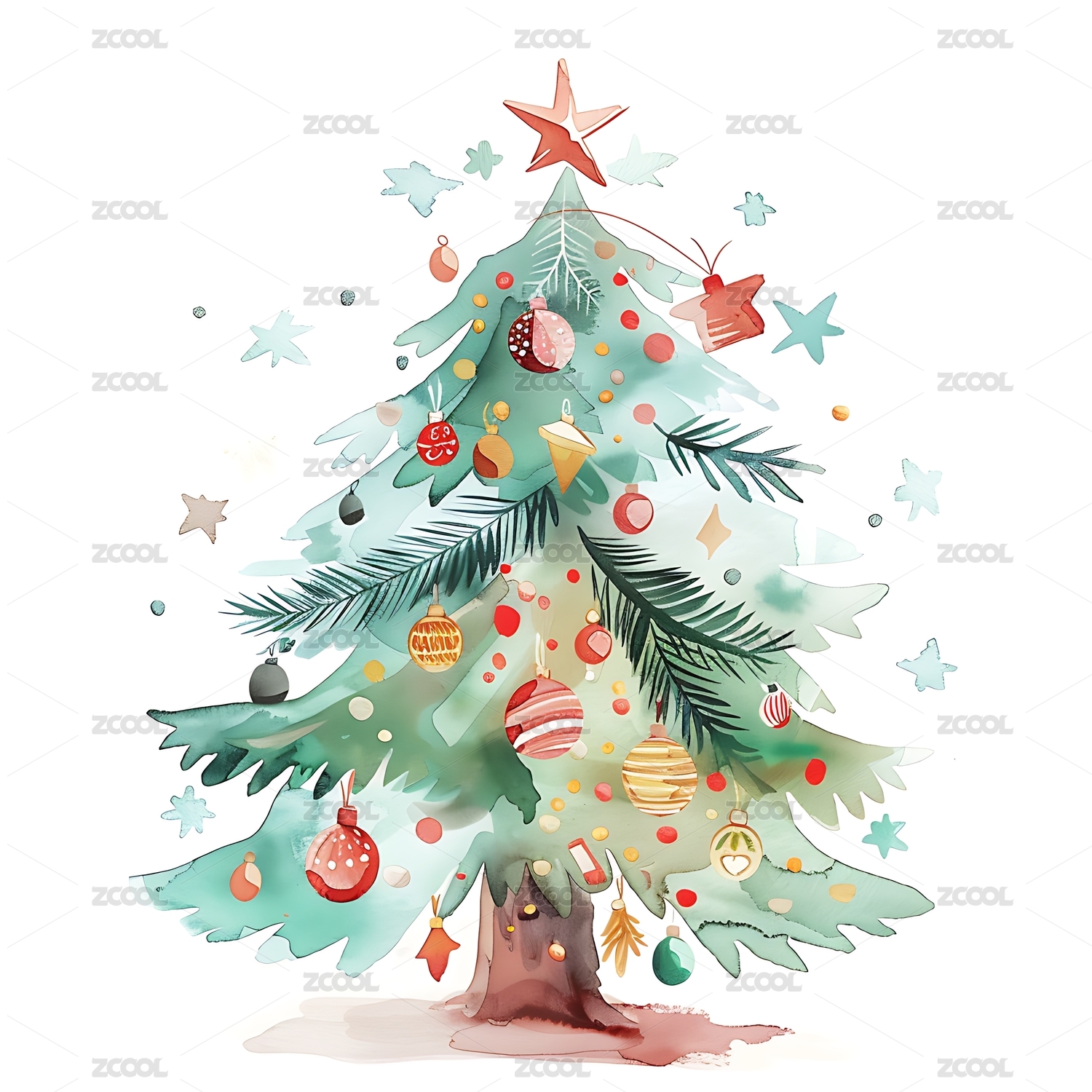水彩圣诞树
