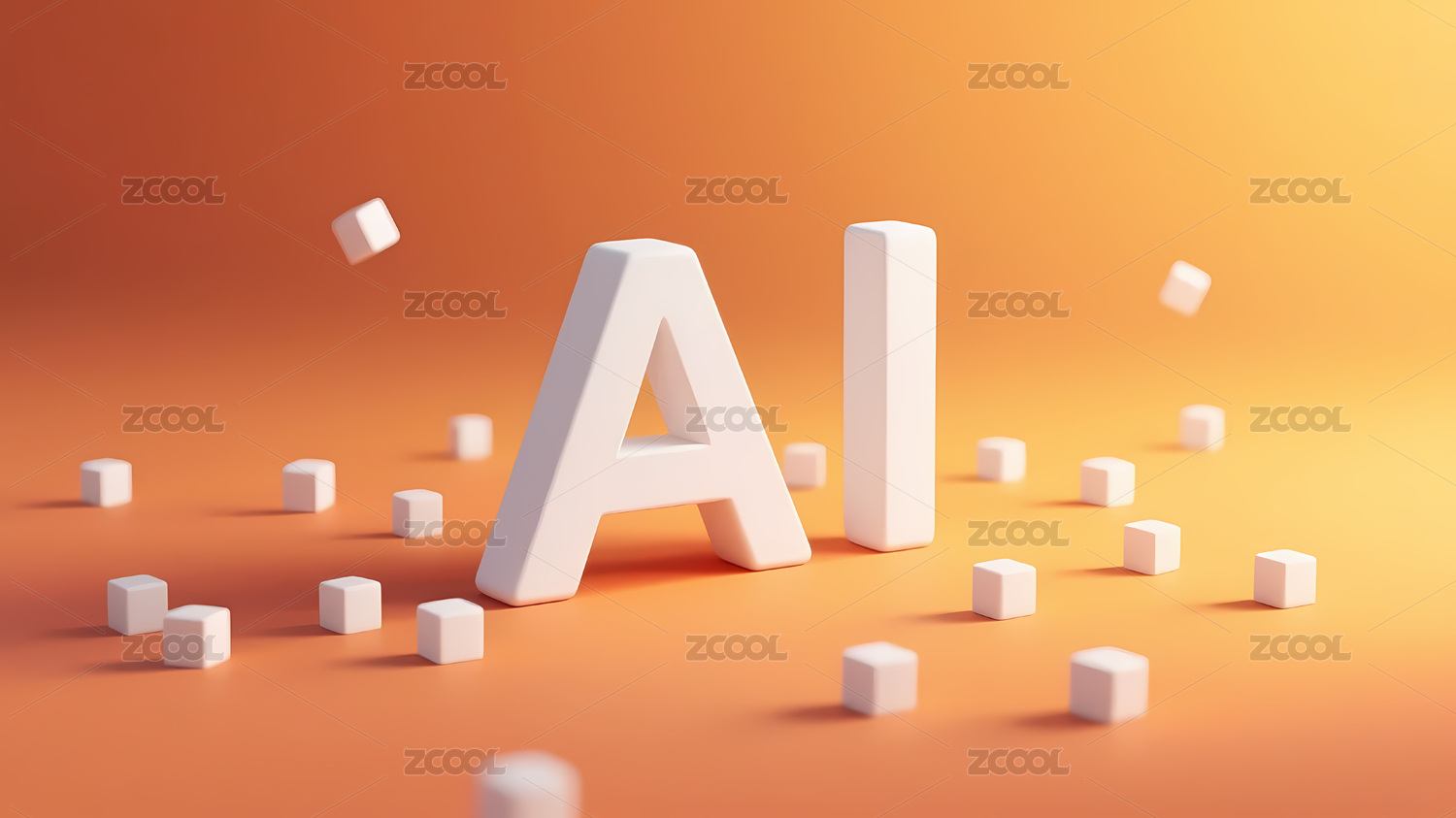 芯片上悬浮 AI 方块伴粒子特效黑背景