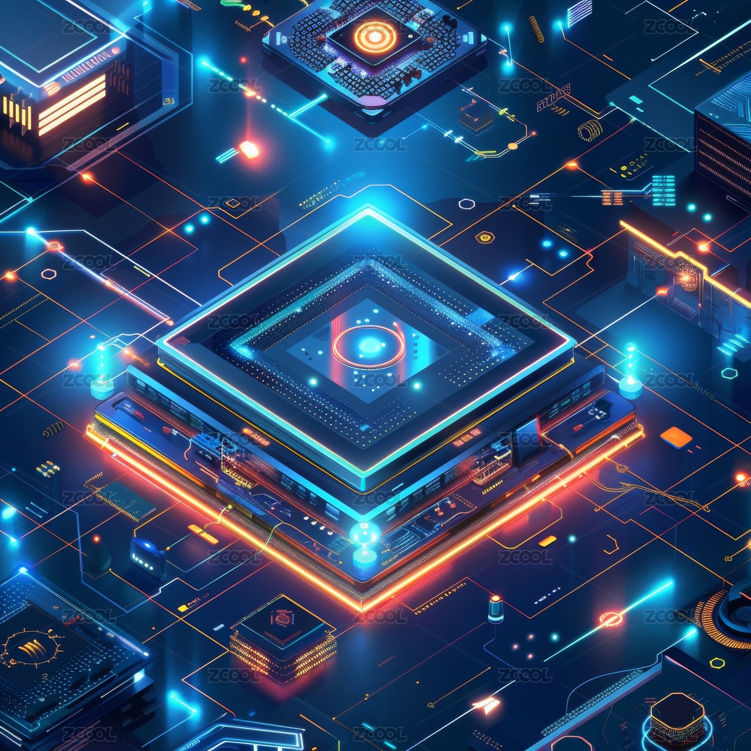 科技感立方体电路板