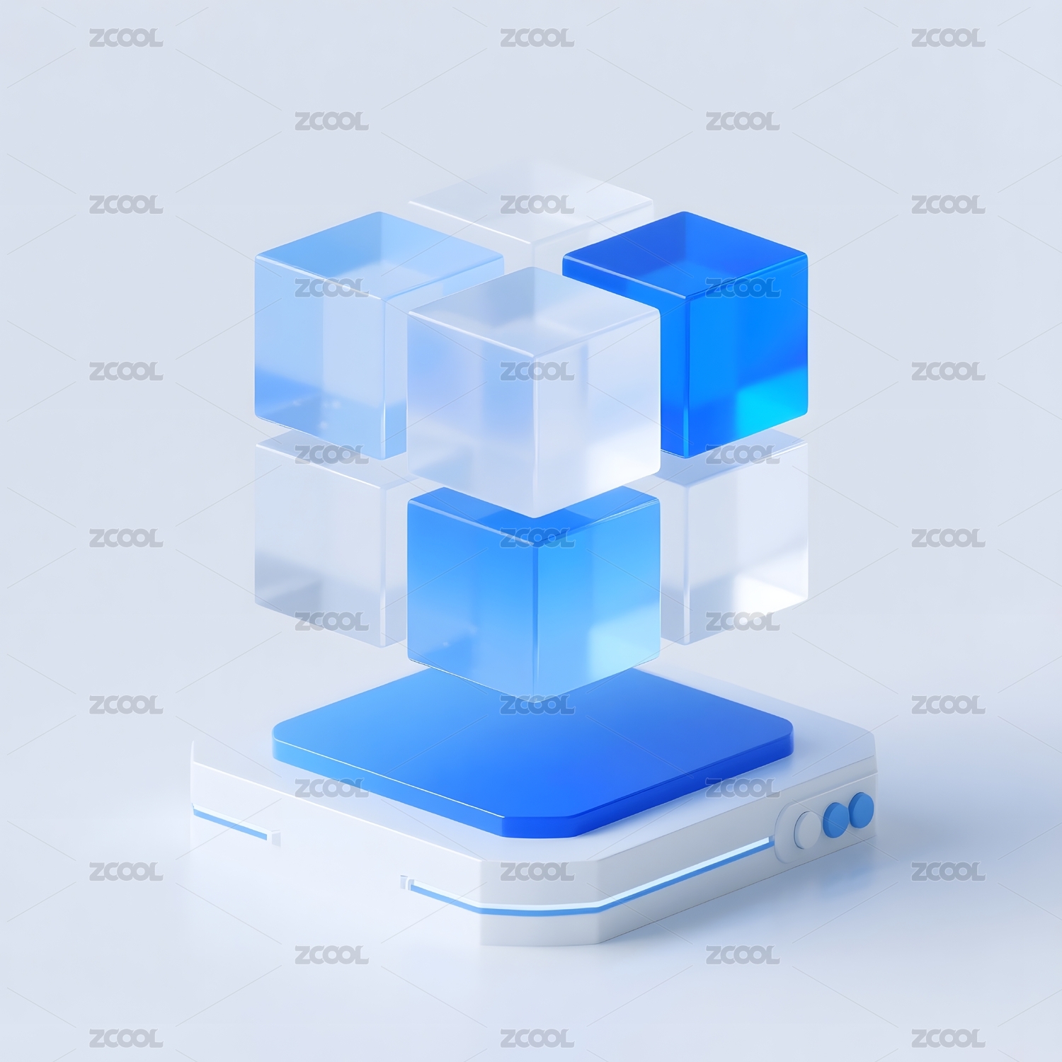 蓝色透明立方体堆叠