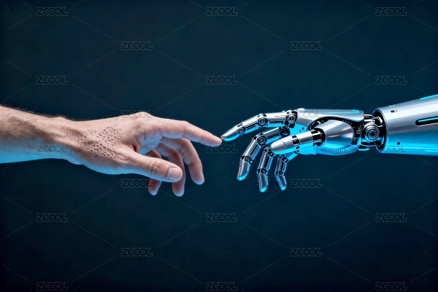 人类手触摸机械手的一瞬间主题背景