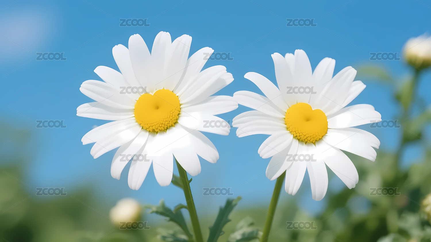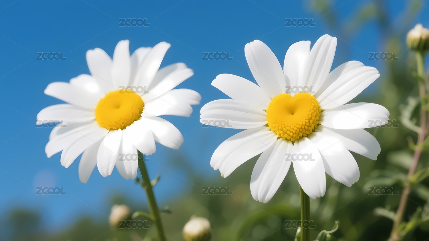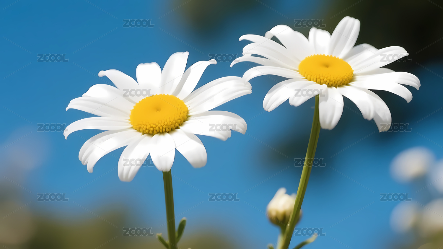 自然,黄色,美丽,白色,背景,植物,清新,雏菊,蓝天,花朵