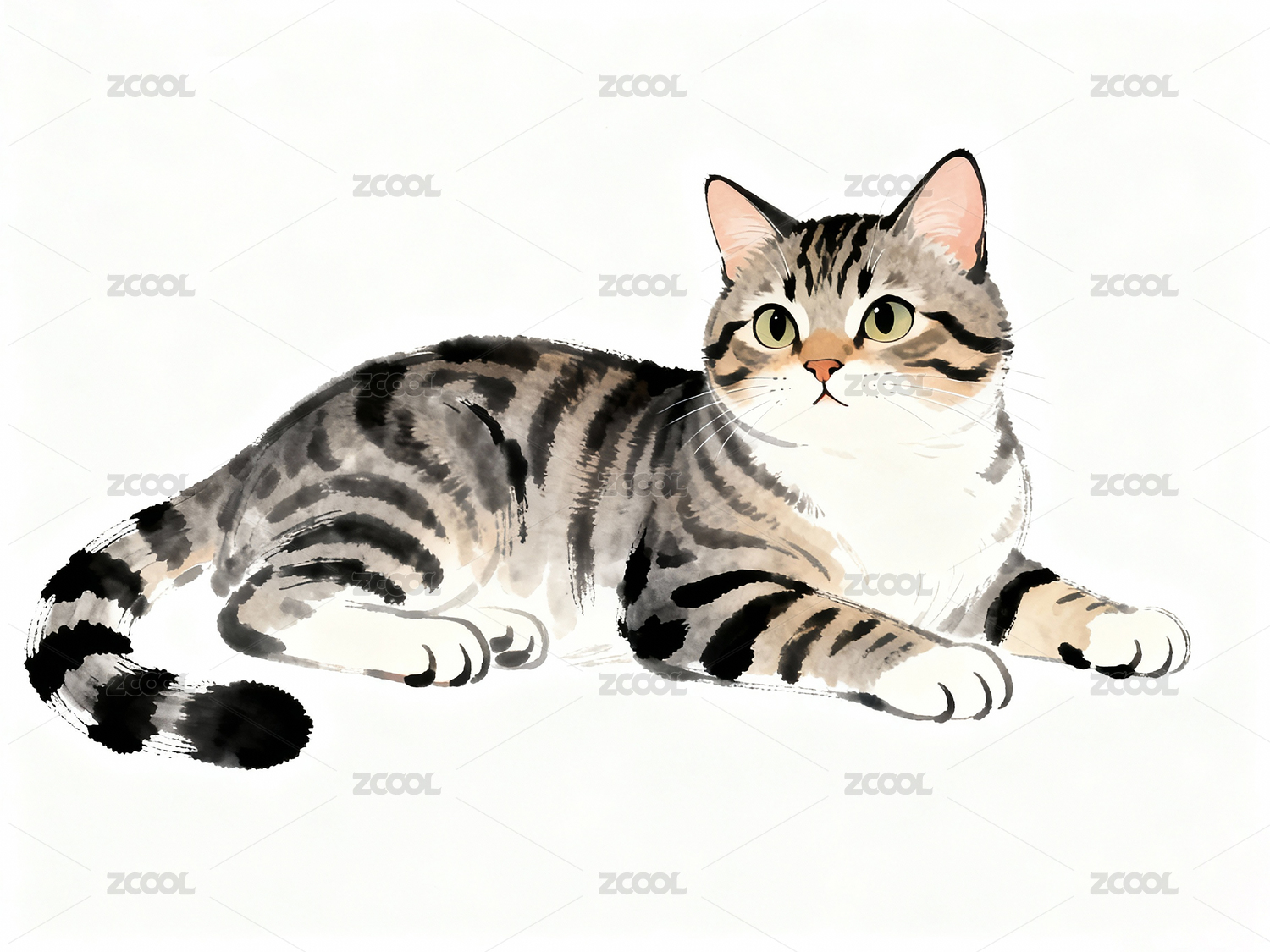 猫猫插画美国短毛猫棕色标准虎斑猫