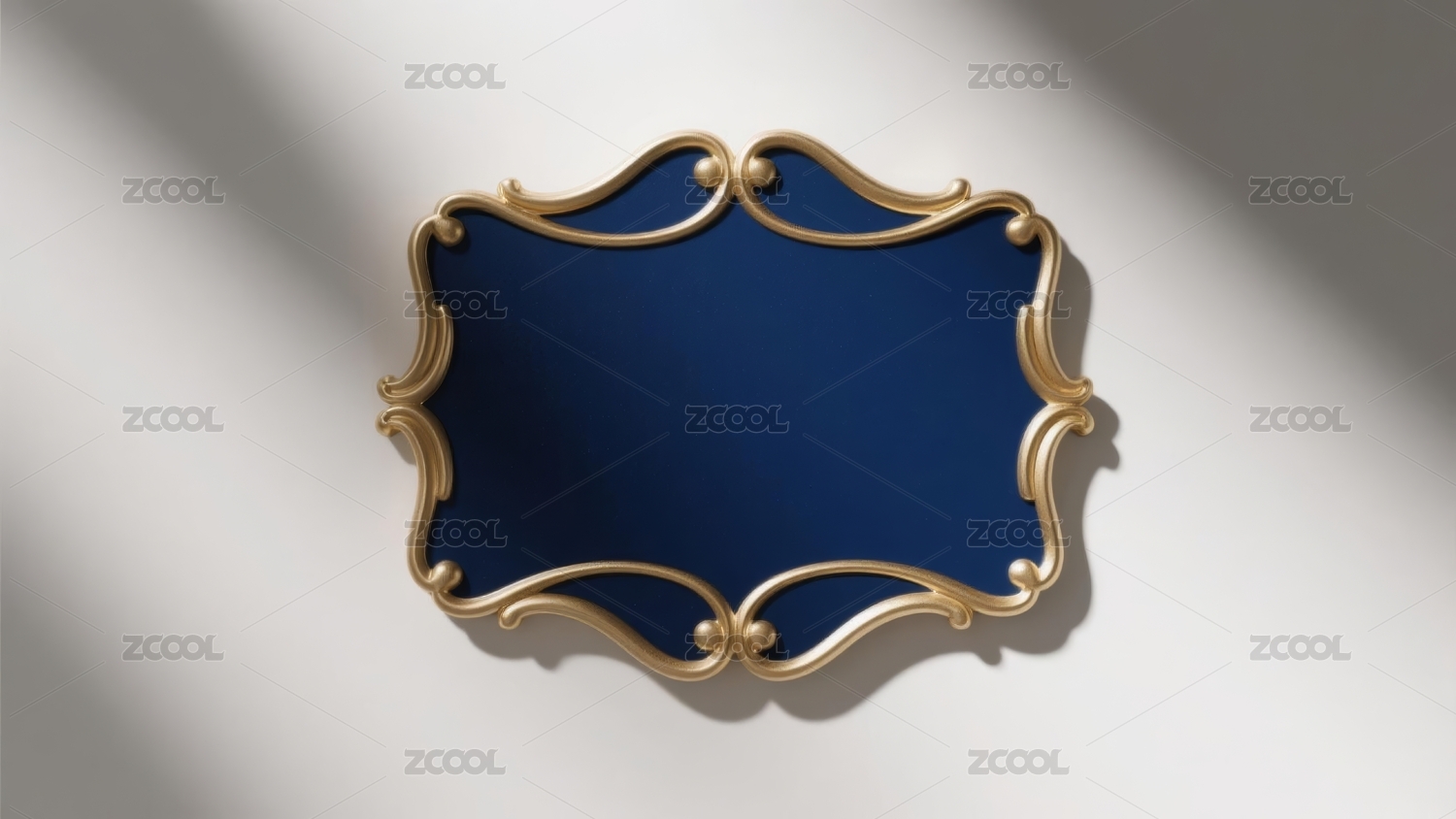 深蓝色背景上的金色椭圆画框