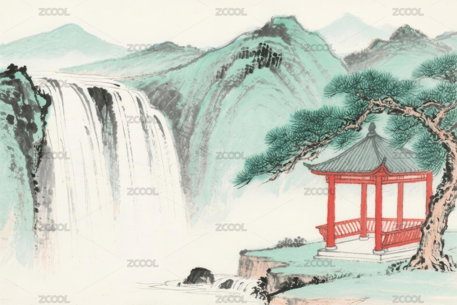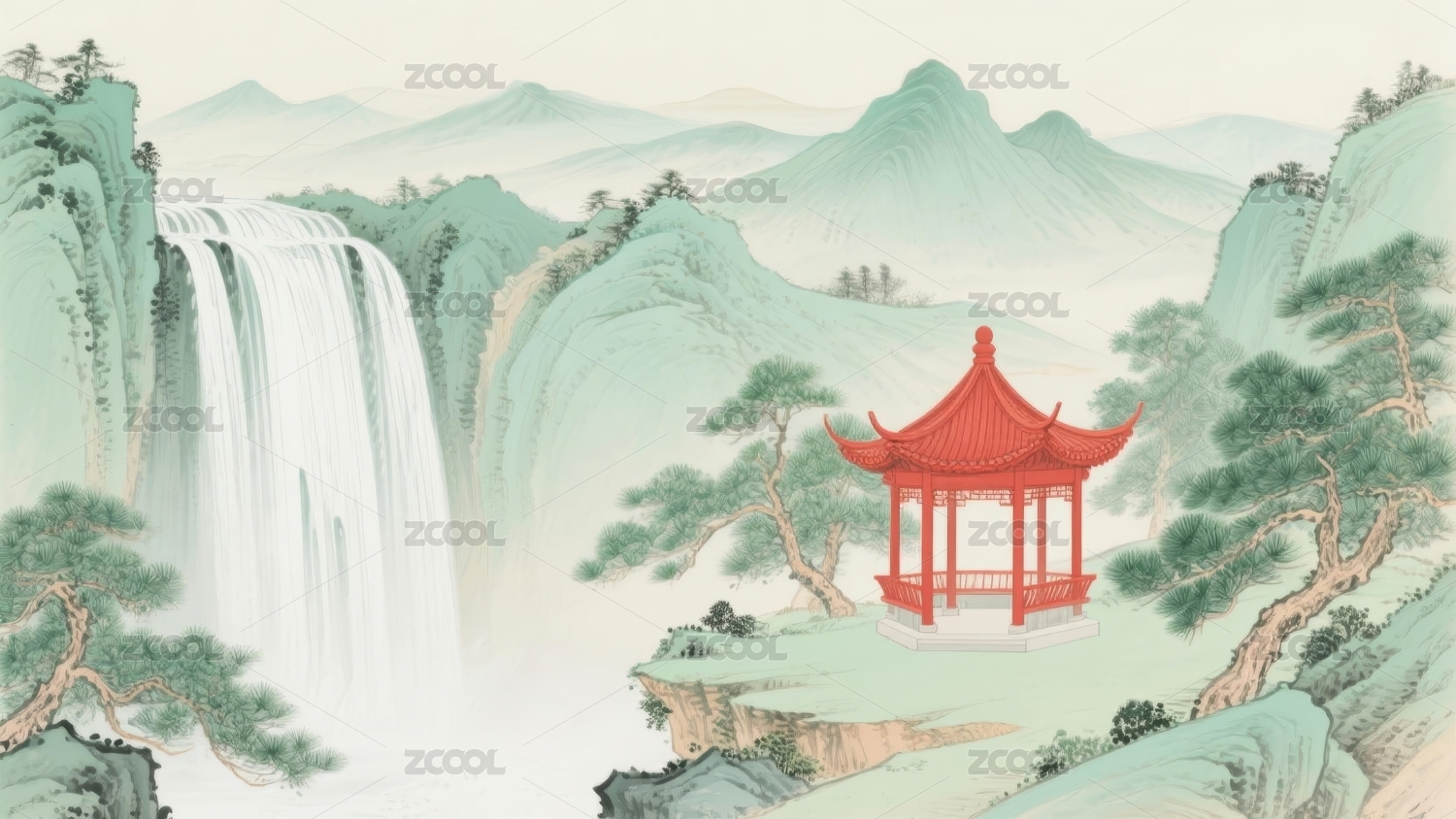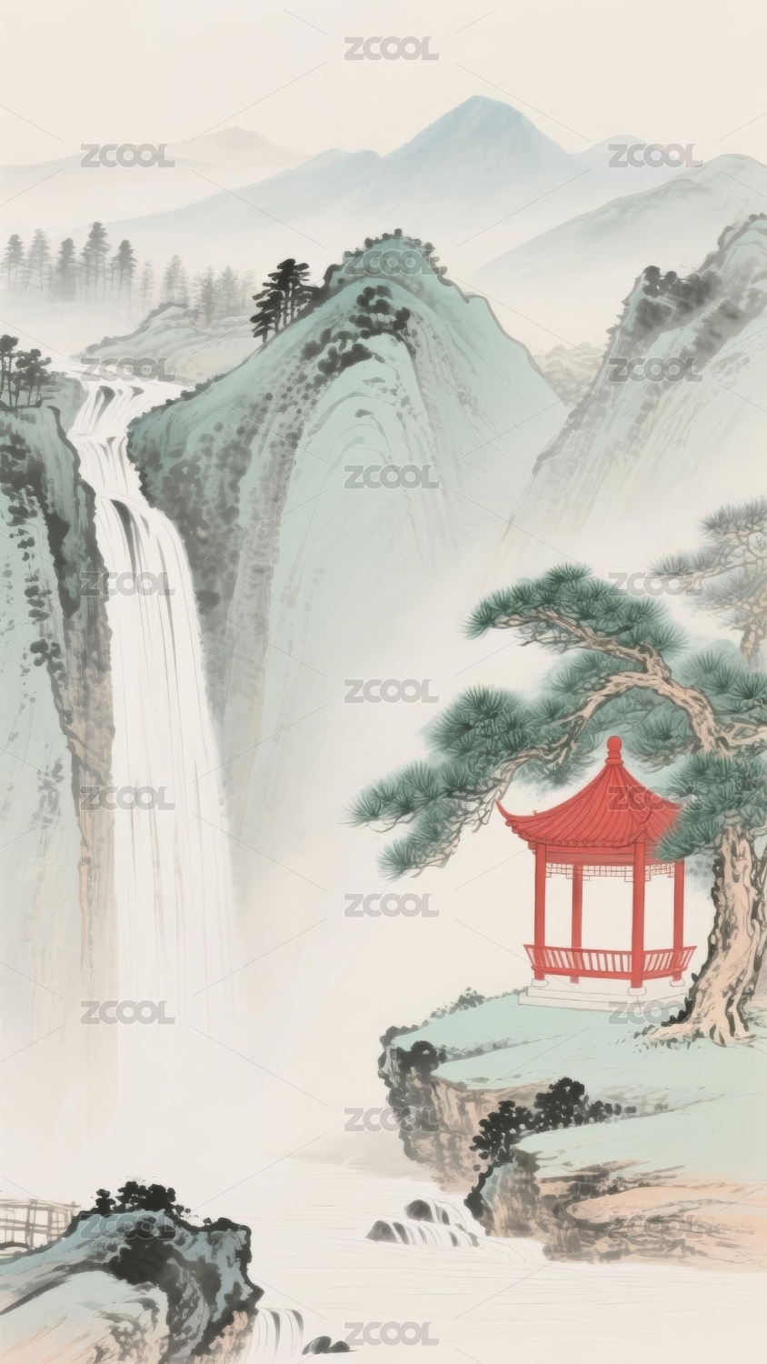山水瀑布诗意国风背景