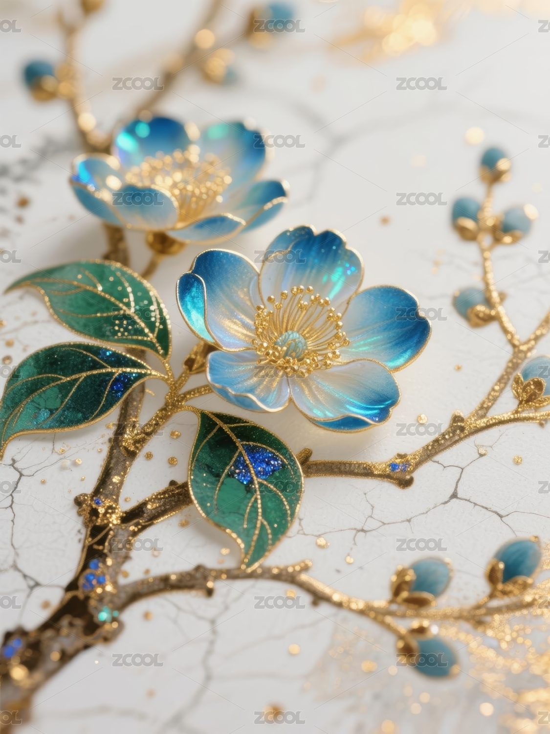 新中式国风钴蓝渐变梅花金箔岩彩抽象插画