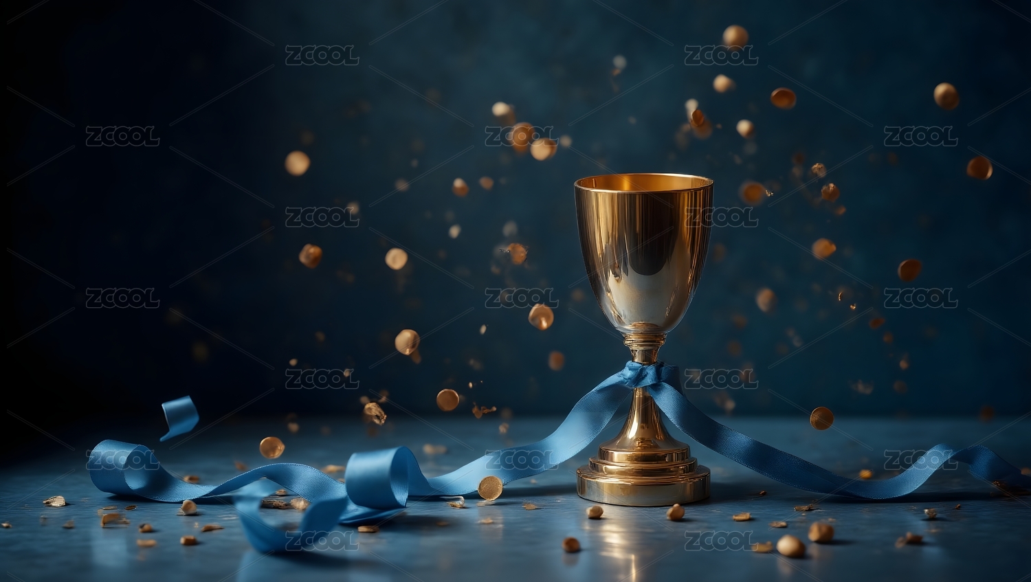 闪亮的金色奖杯与背景夜光散景,比赛冠军成