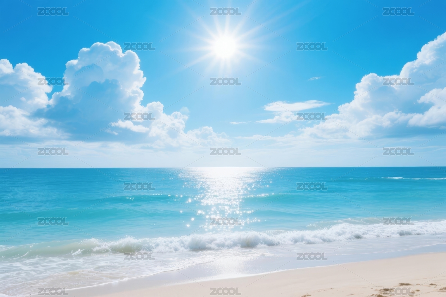 阳光沙滩海浪蓝天白云美景