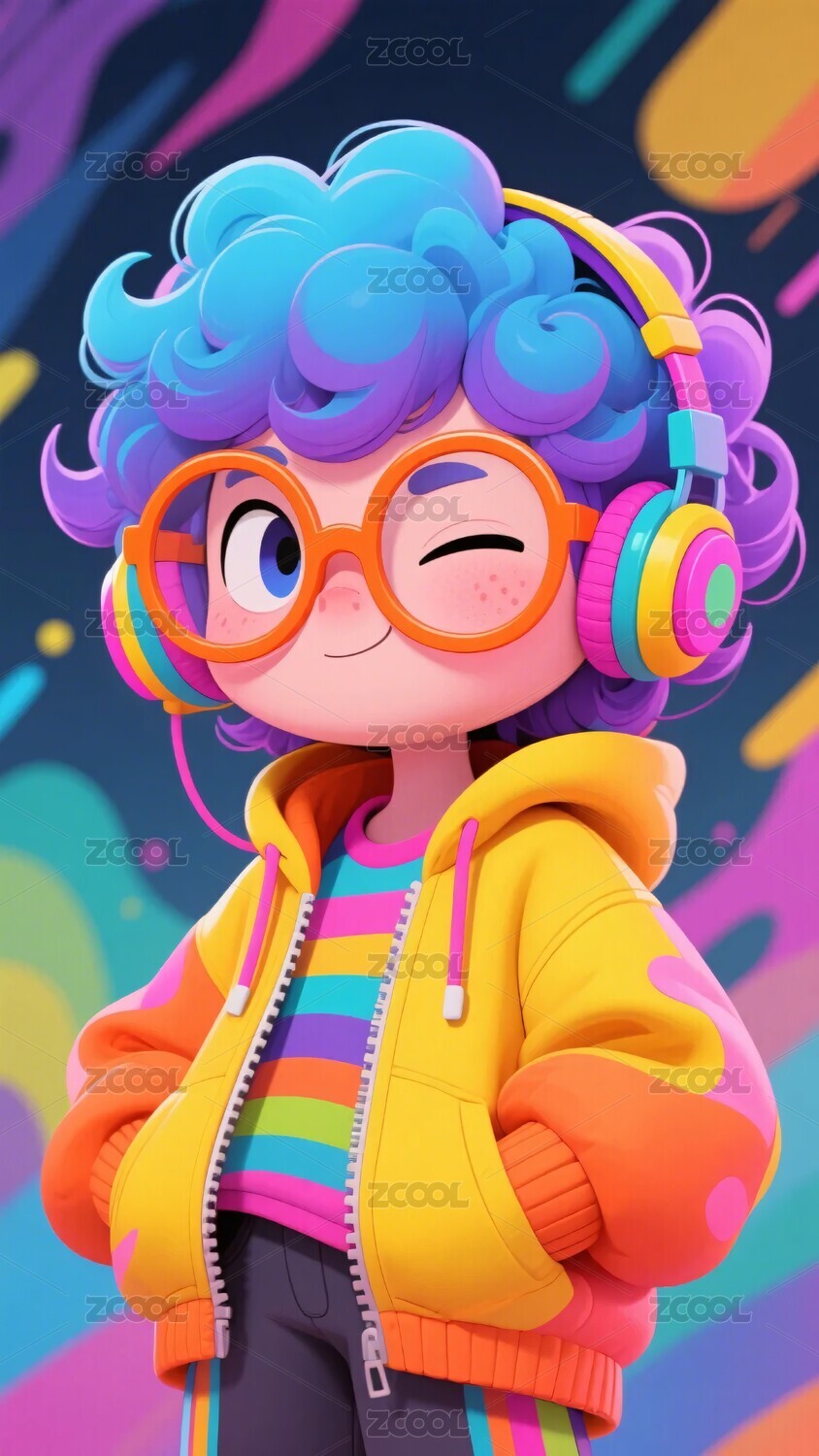 卡通形象,女孩,彩色,上衣,裤子,鞋子,袜子,熊头,微笑,奇趣