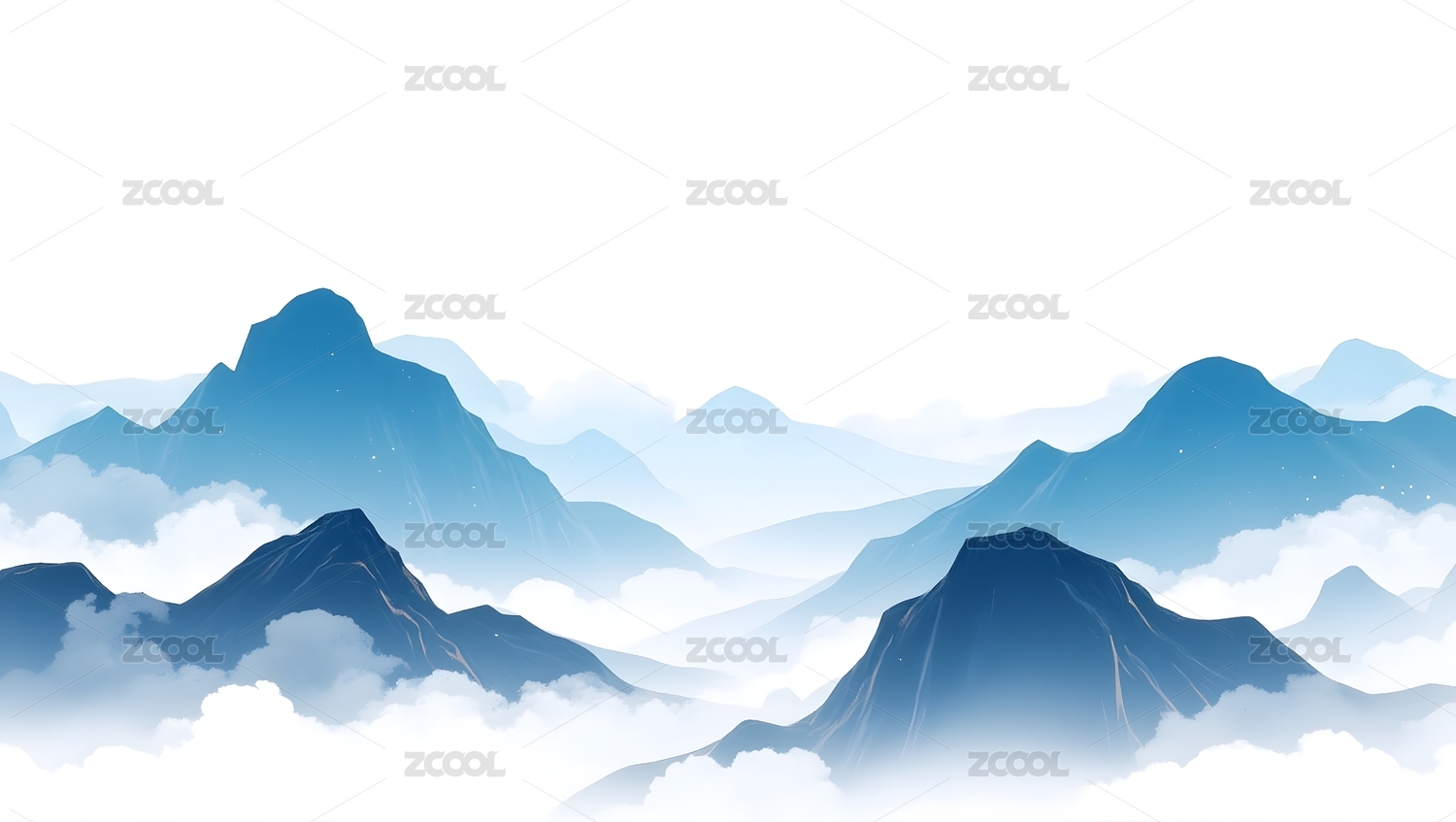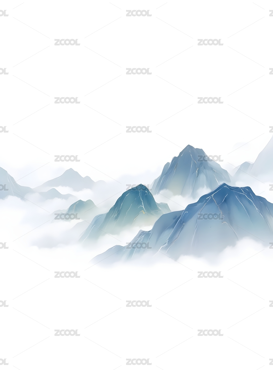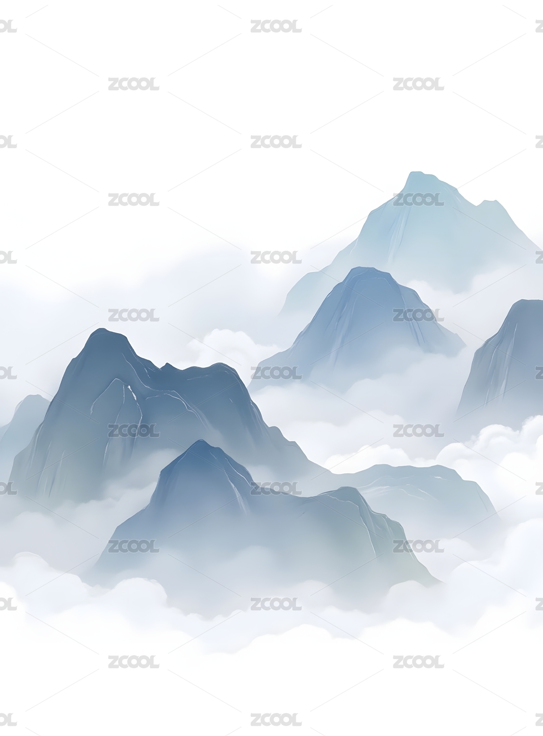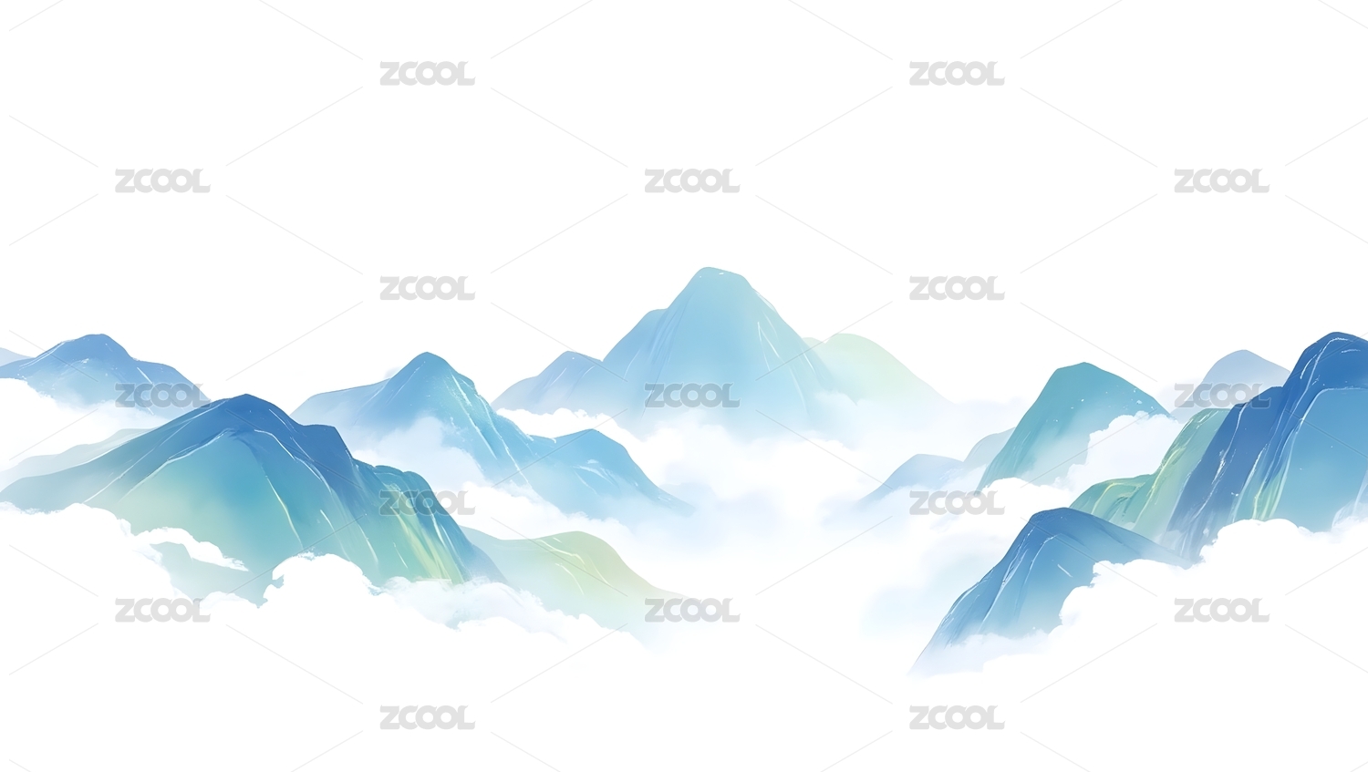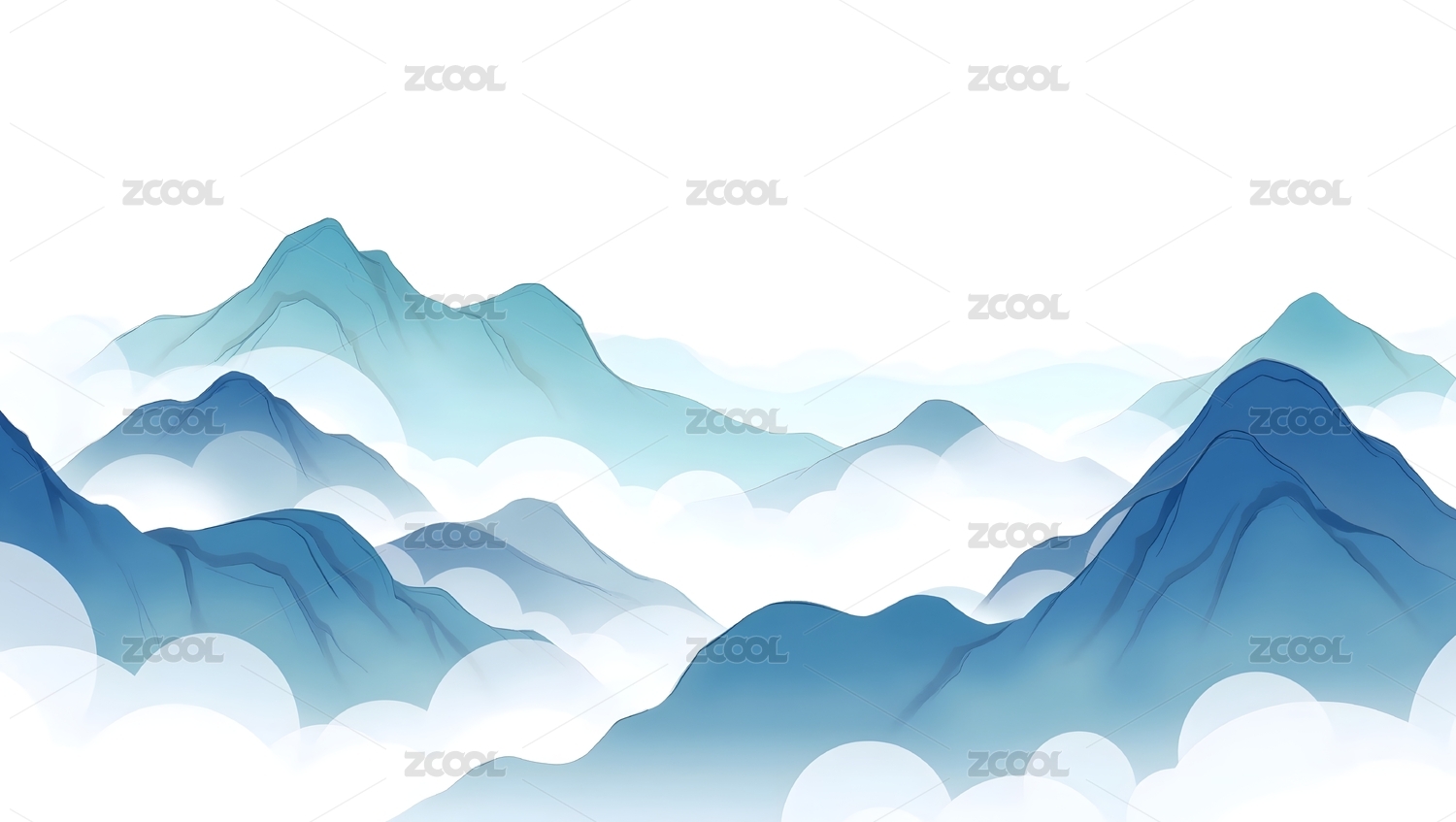 云雾,新中式,国潮,中国风,山水,山峦,山峰,青色,云海,云层