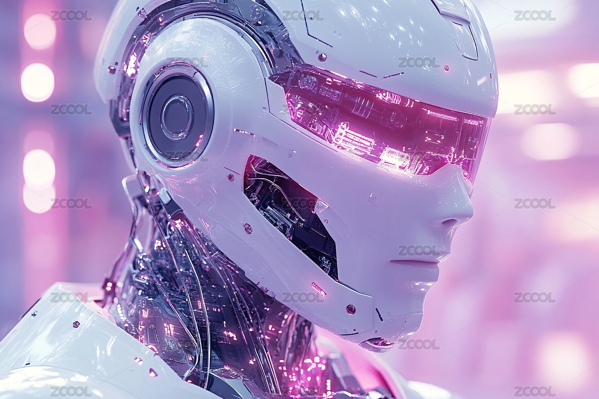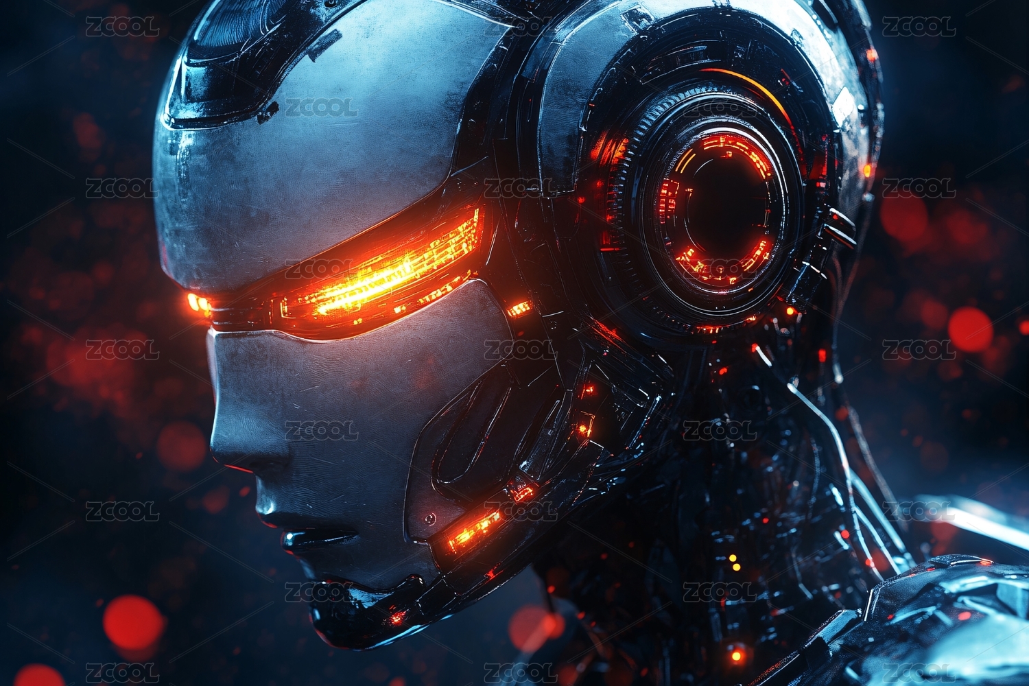 机器人,头部,科技感,未来,科幻,电子元件,发光,插画,虚拟,形象