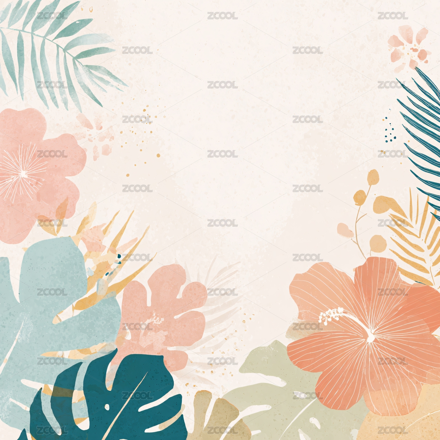 热带花卉水彩背景插画