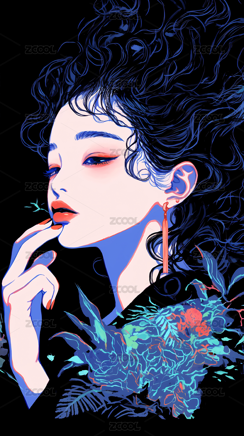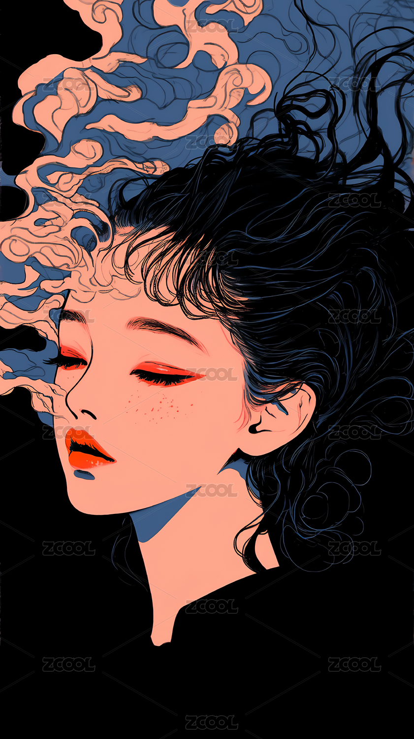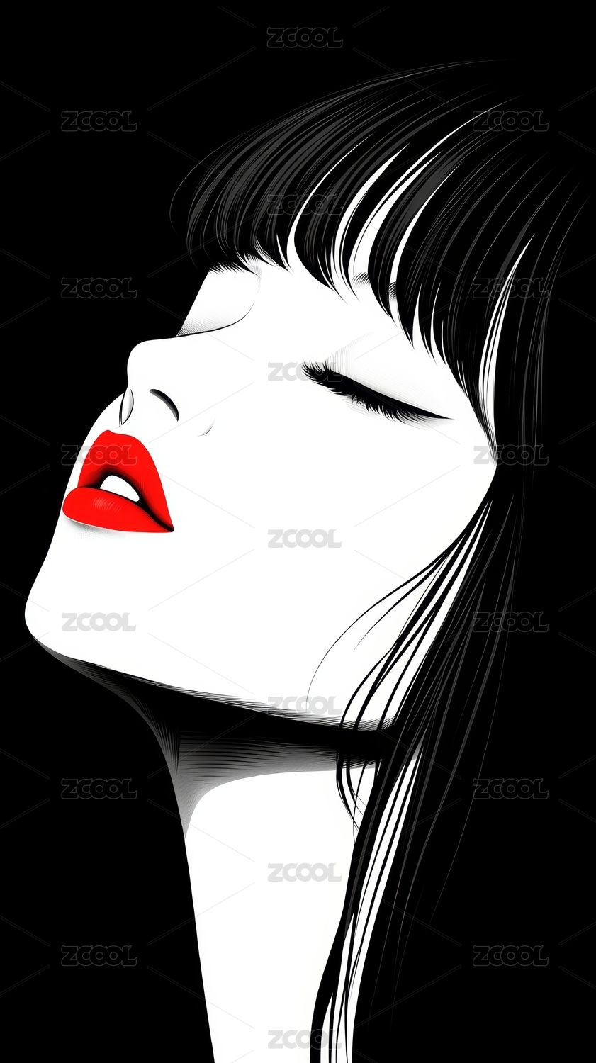 女性插画,艺术,黑白,线条,简约,面容,侧脸,艺术作品,设计,光影