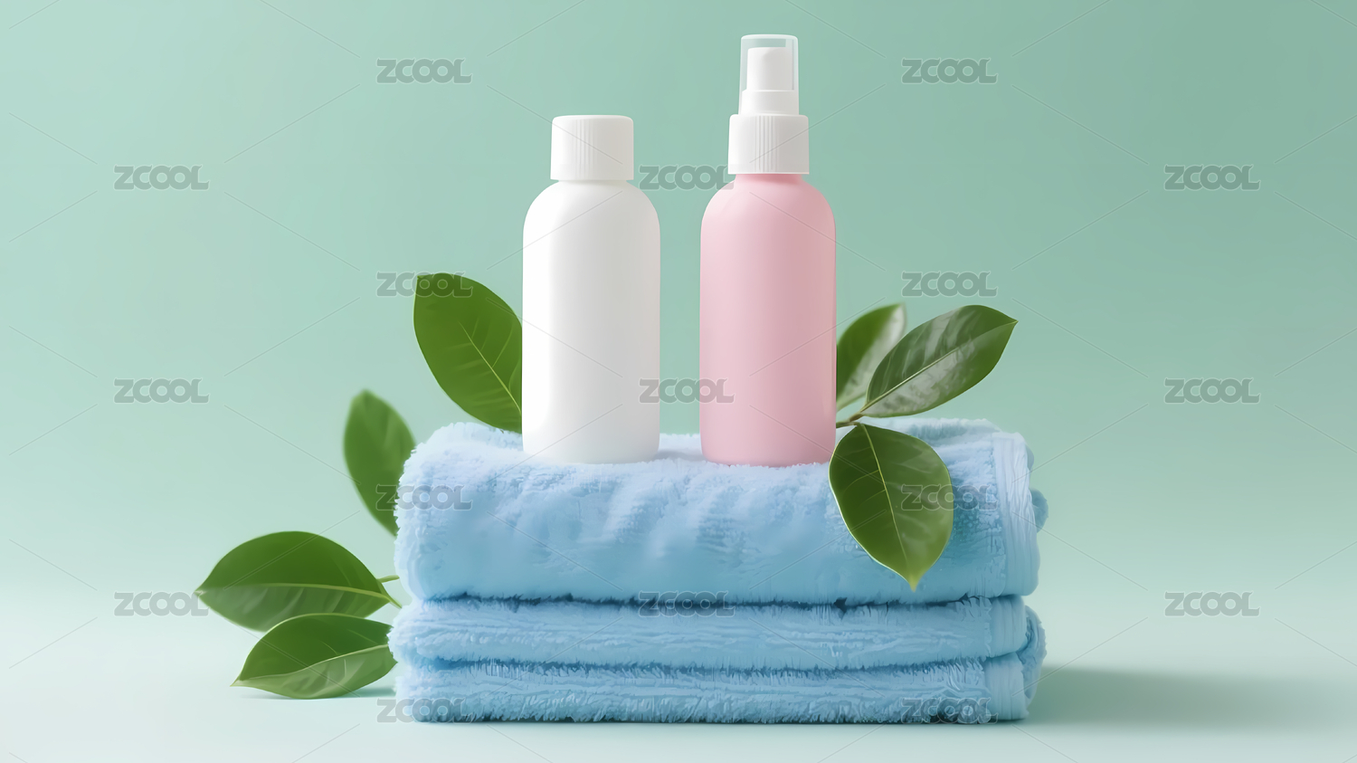 清新护肤品毛巾叶子