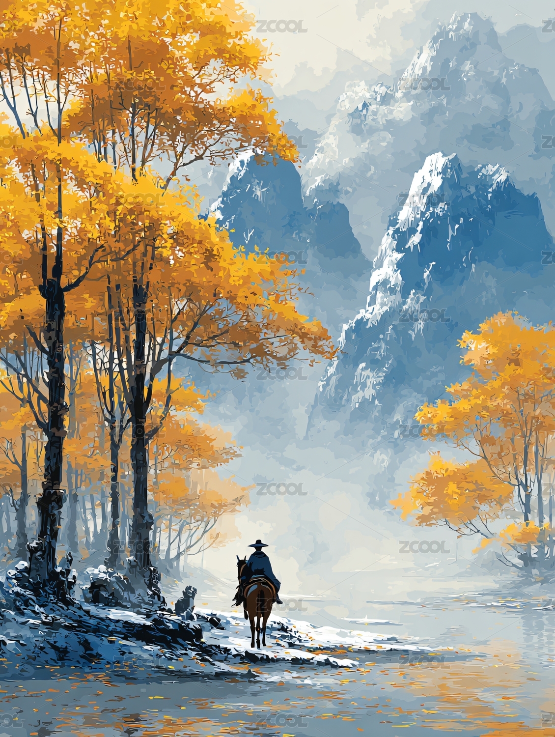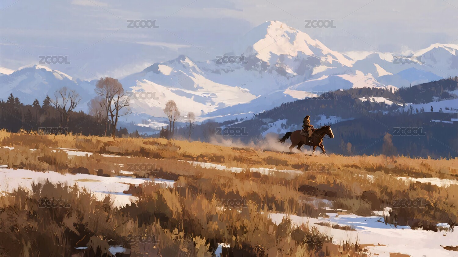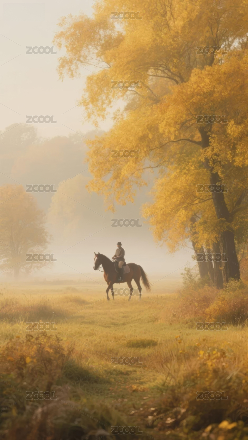 骑马,人物,草原,树木,秋景,风景,插画,风景画,自然,户外