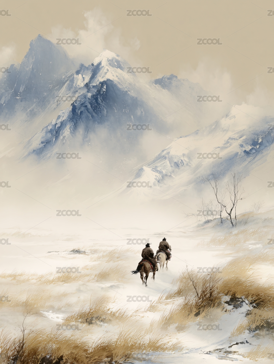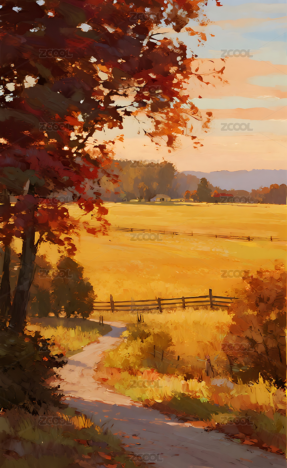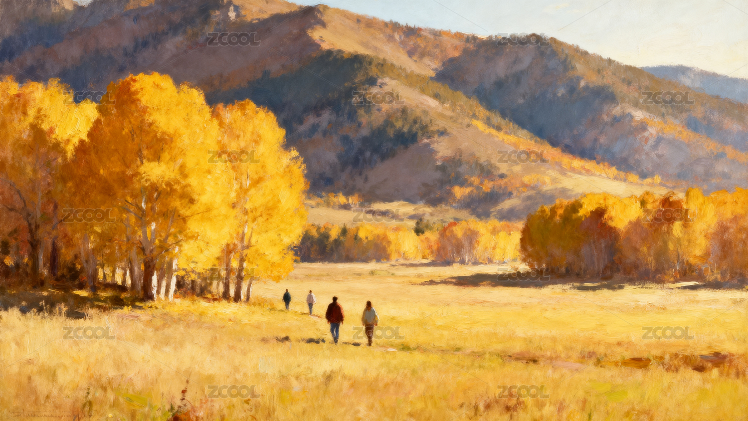 骑马,人物,草原,树木,秋景,风景,插画,风景画,自然,户外