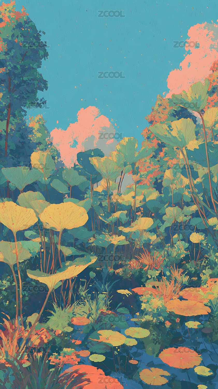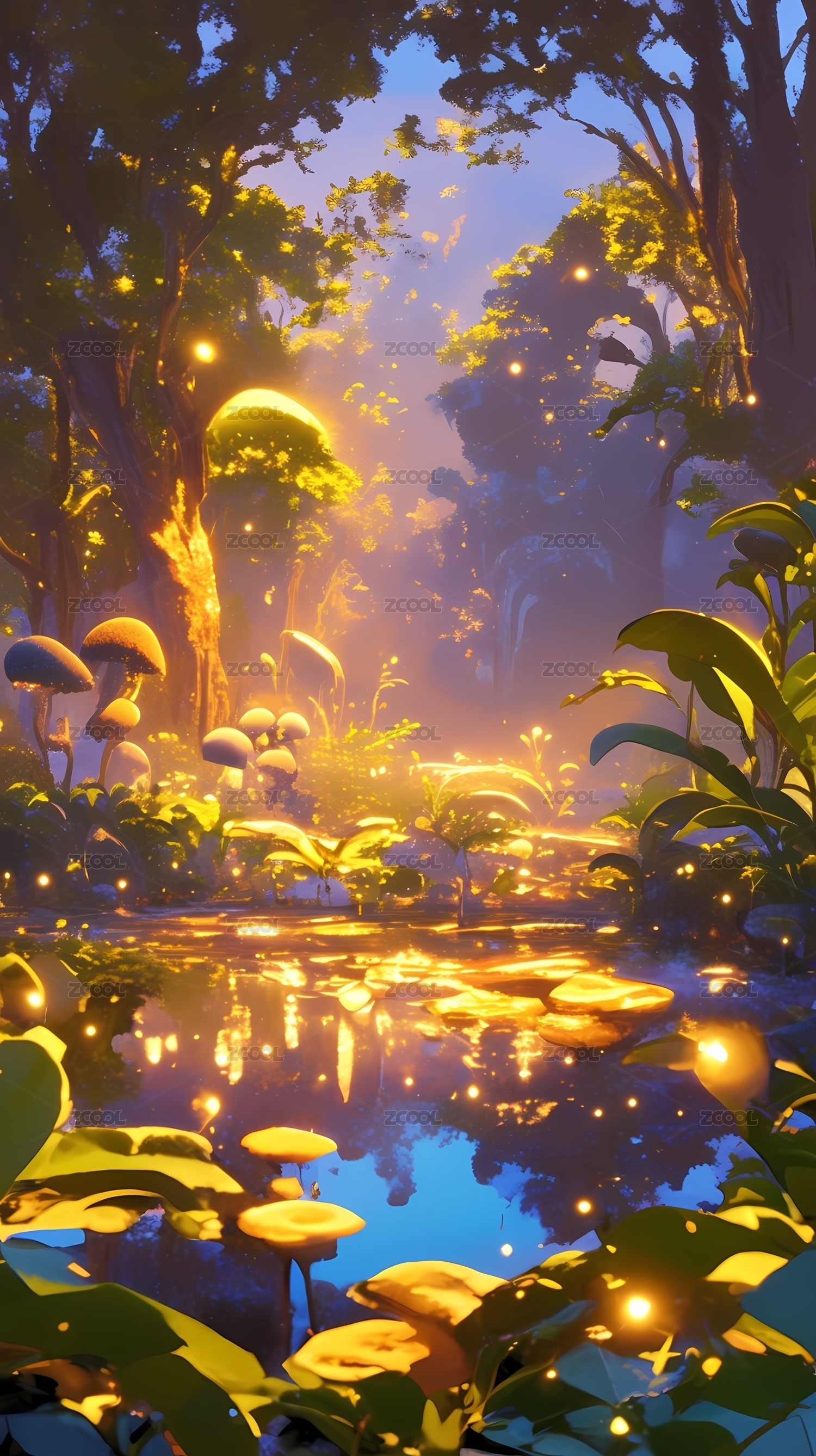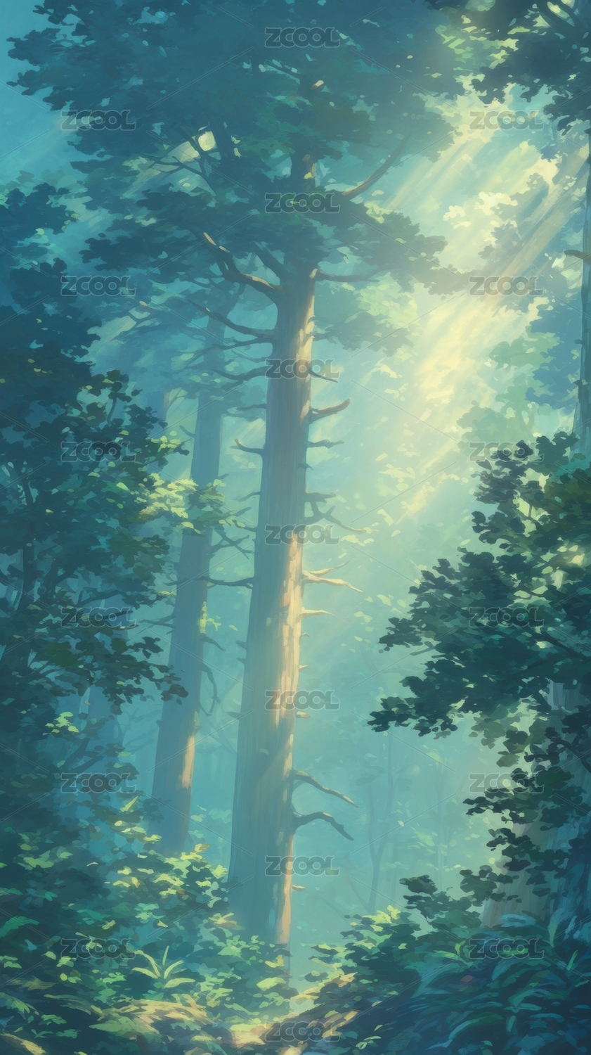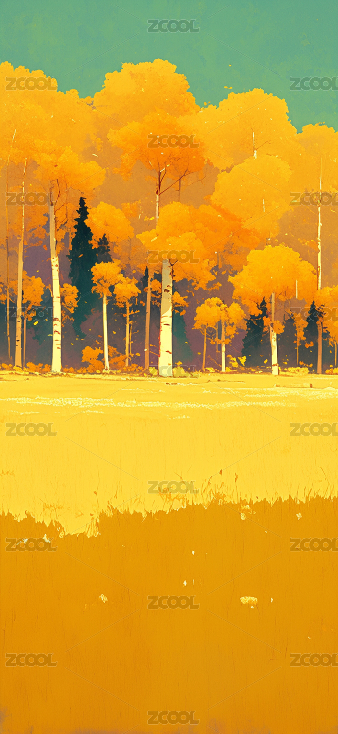 森林,树木,丛林,自然,插画,背景,植被,夕阳,黄昏,暖色调