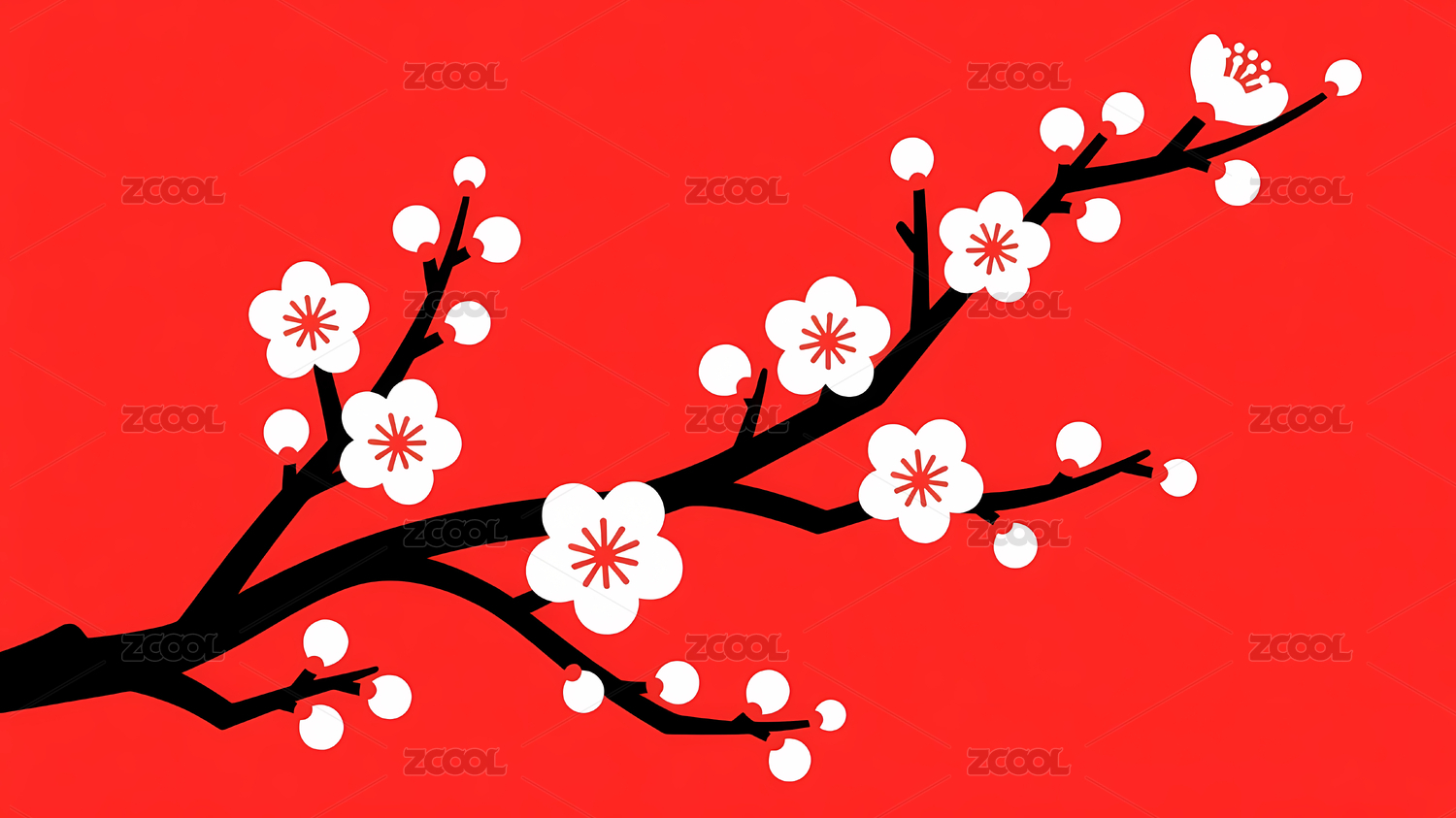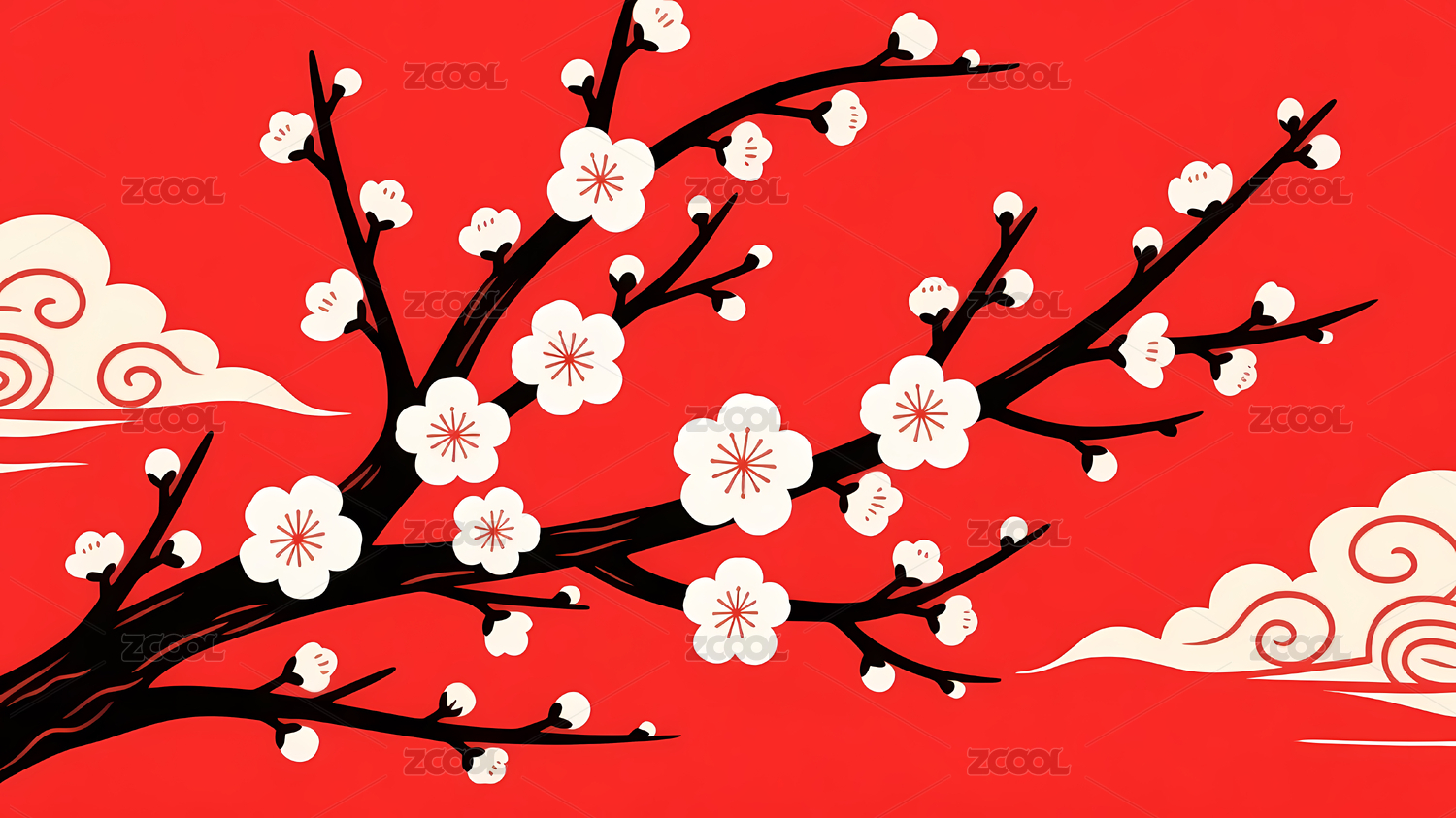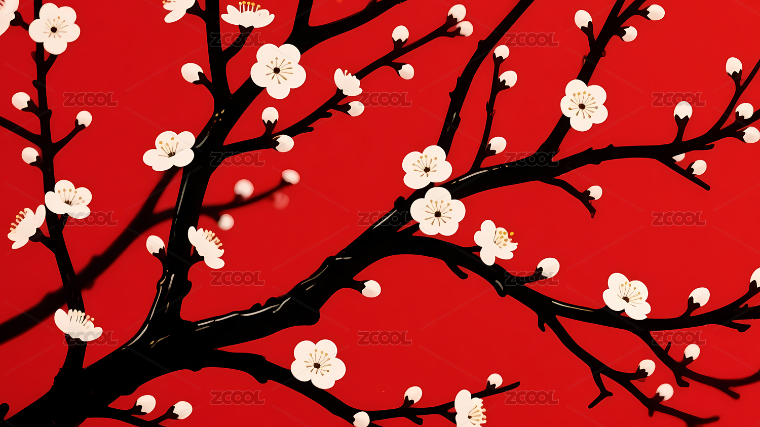 背景,红色,白色,黑色,云朵,树枝,梅花,枝干,艺术,东方