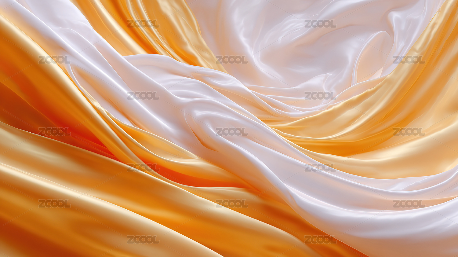金色与白色丝绸的柔美褶皱