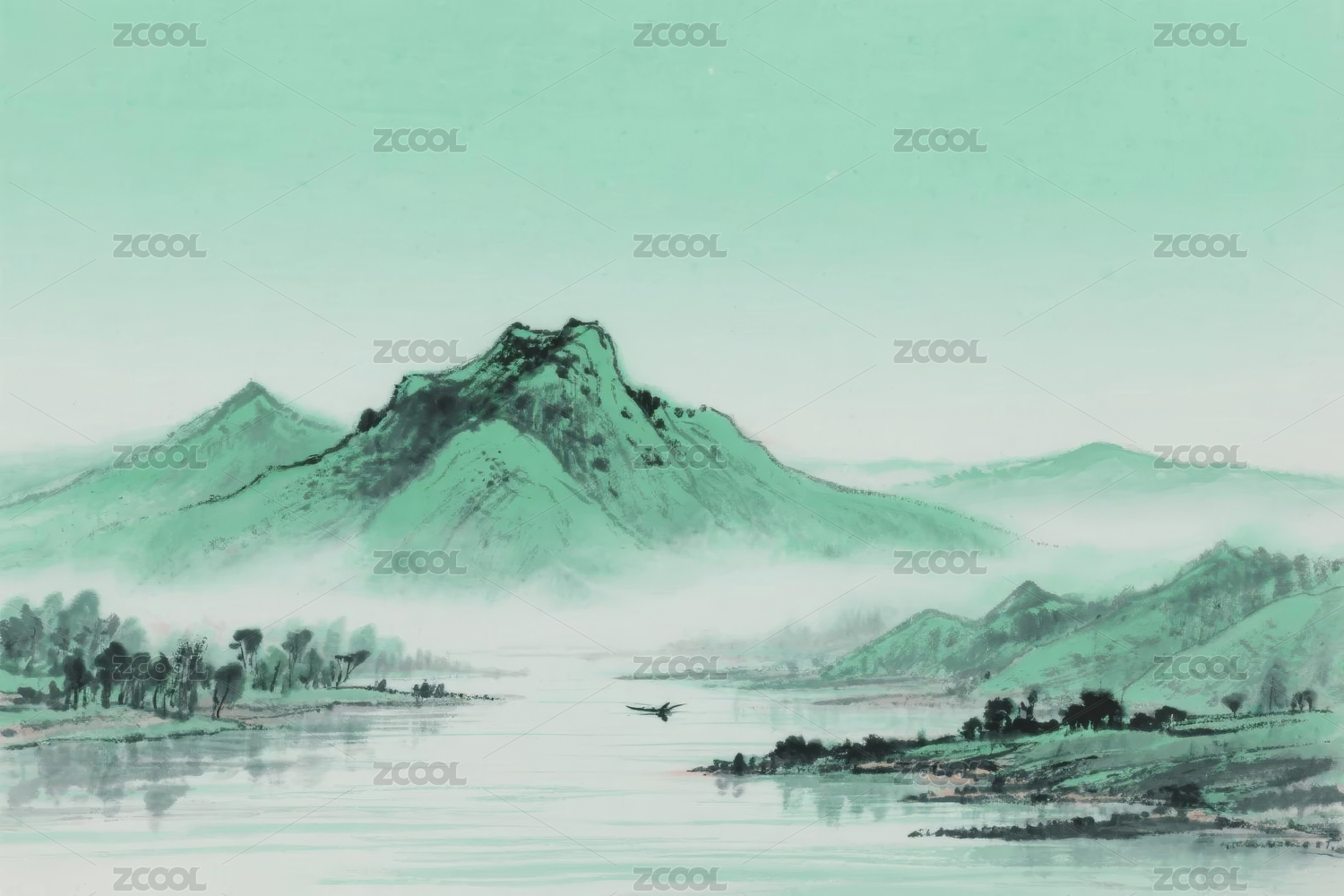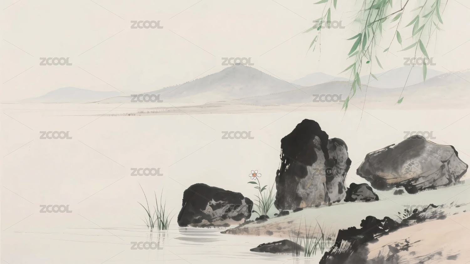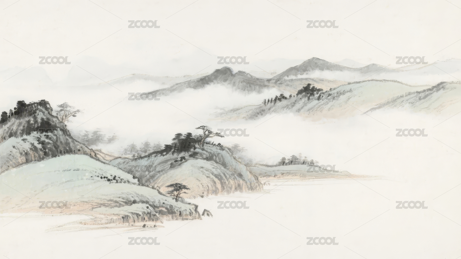 山水,水墨,云雾,草地,石头,山水画,风景,自然,国画,水墨画