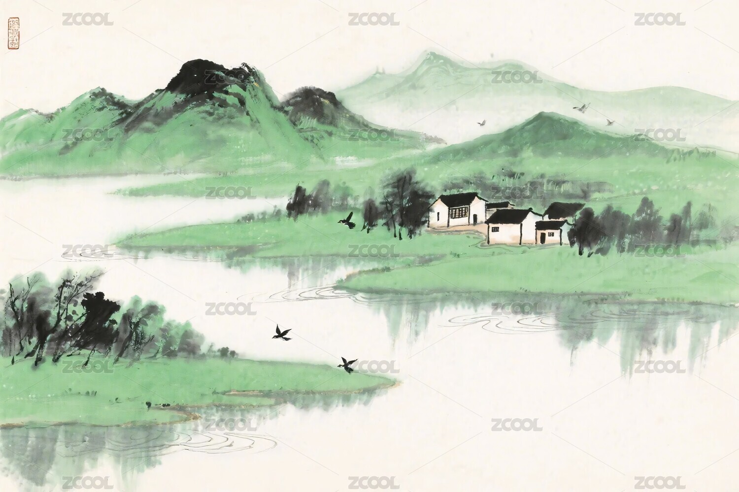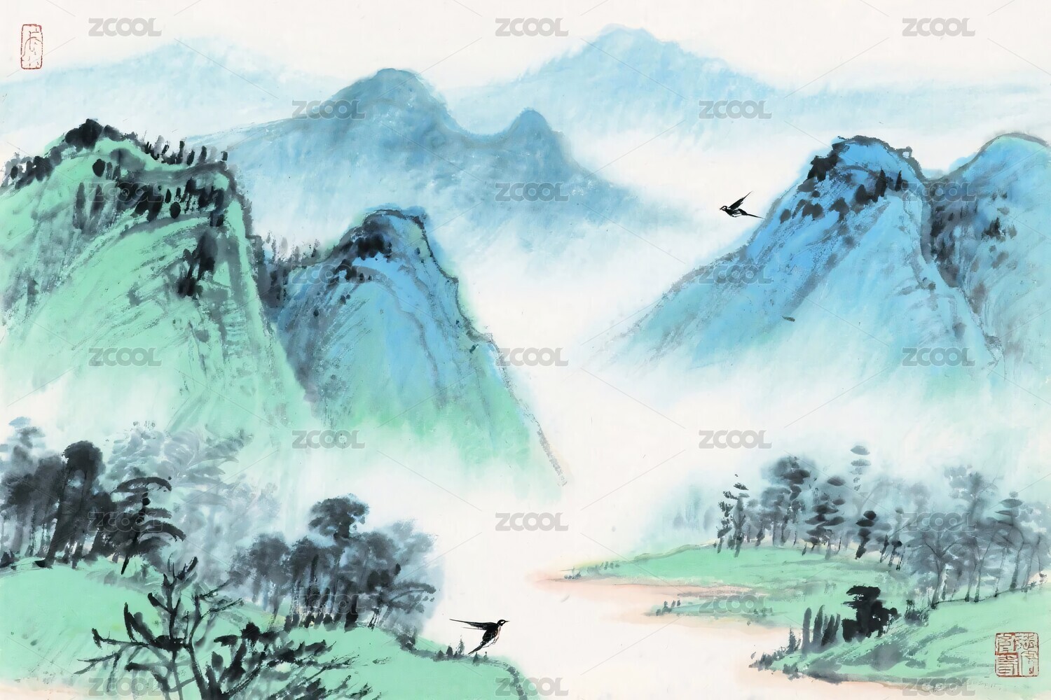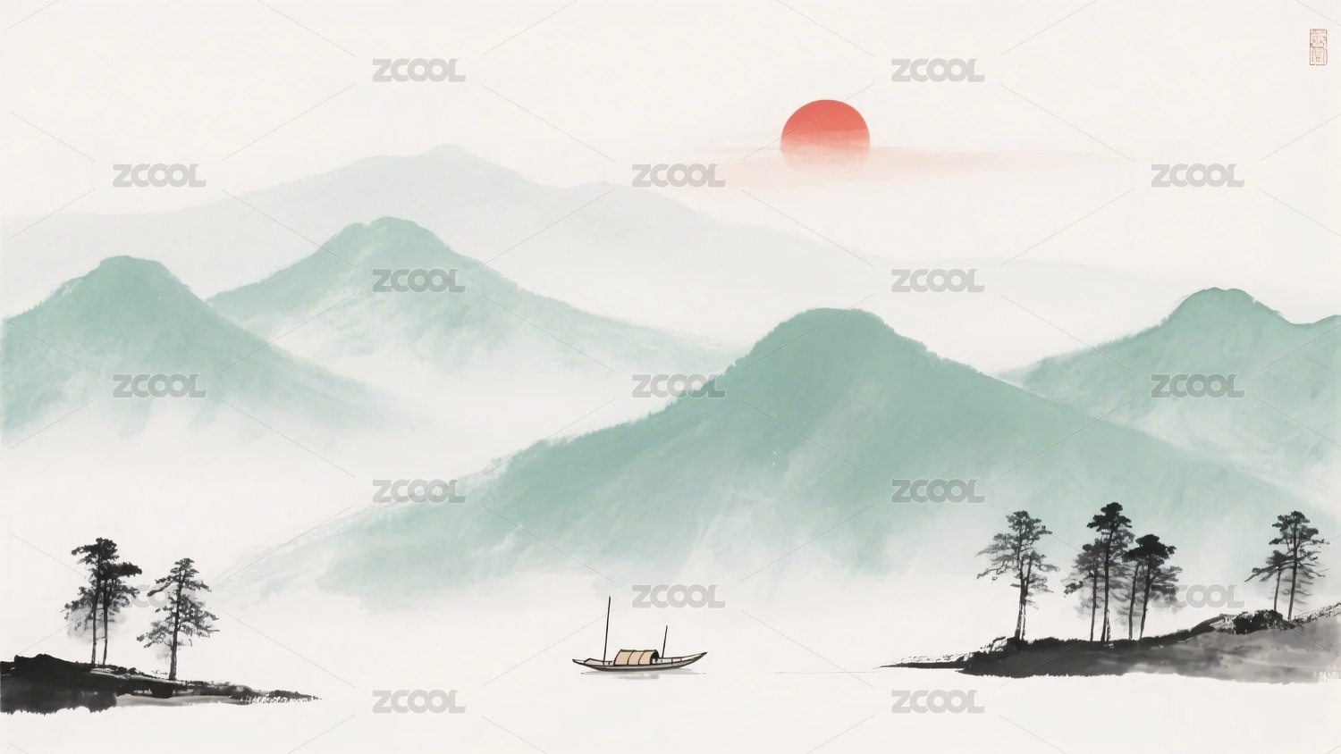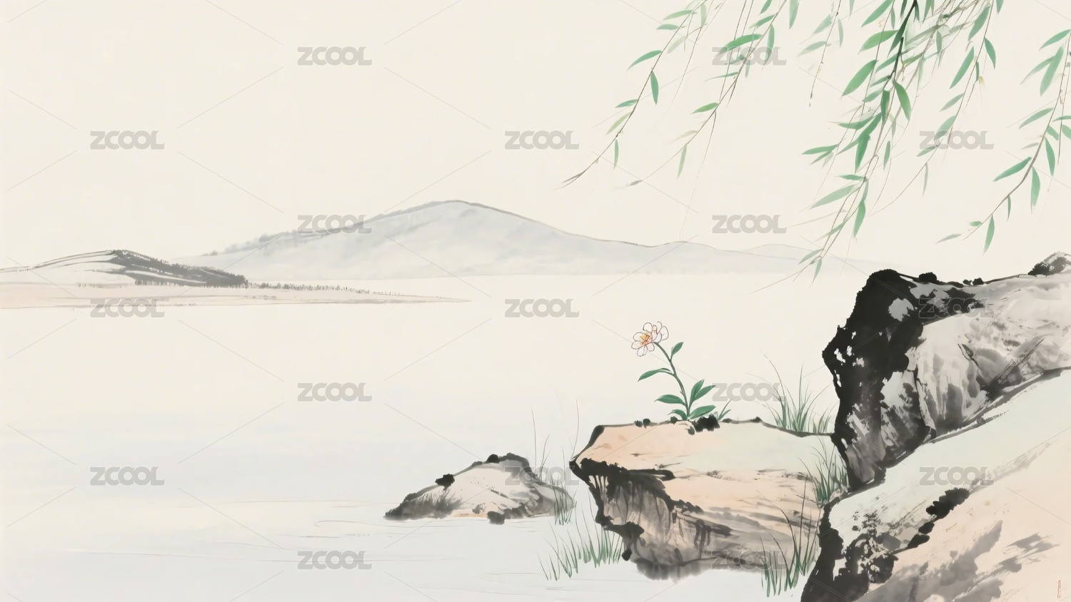 山水,水墨,云雾,草地,石头,山水画,风景,自然,国画,水墨画